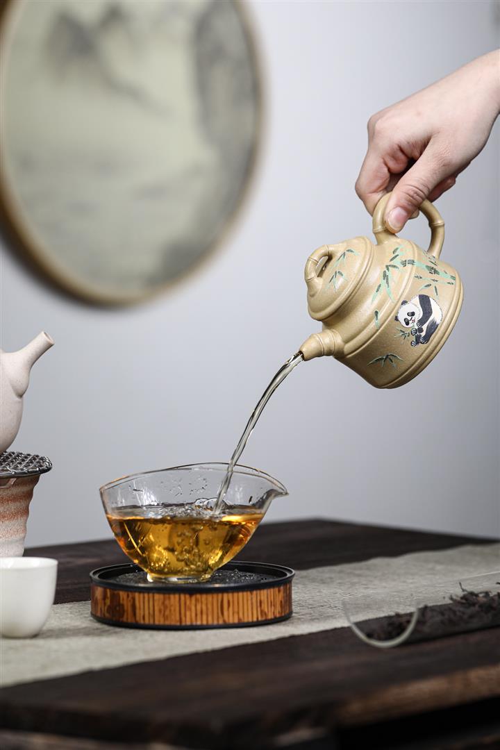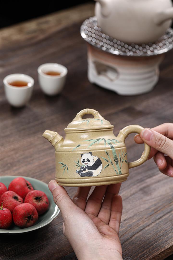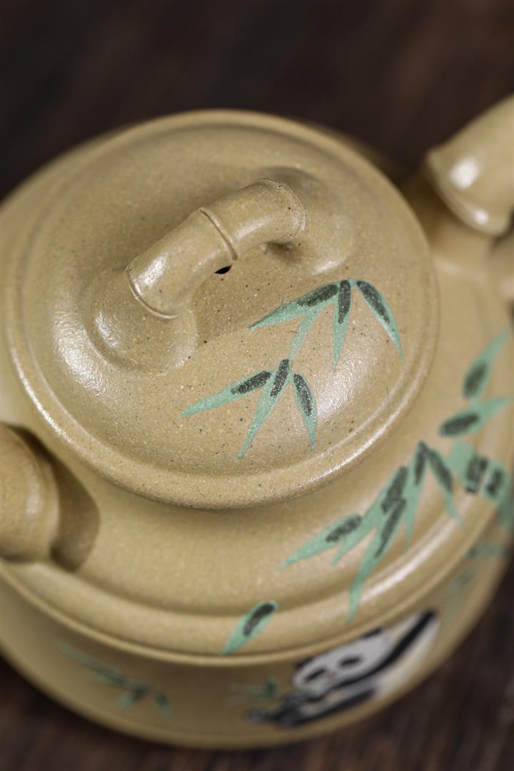260cc原礦本綠泥彩繪熊貓竹鼎泡茶壺POT9555