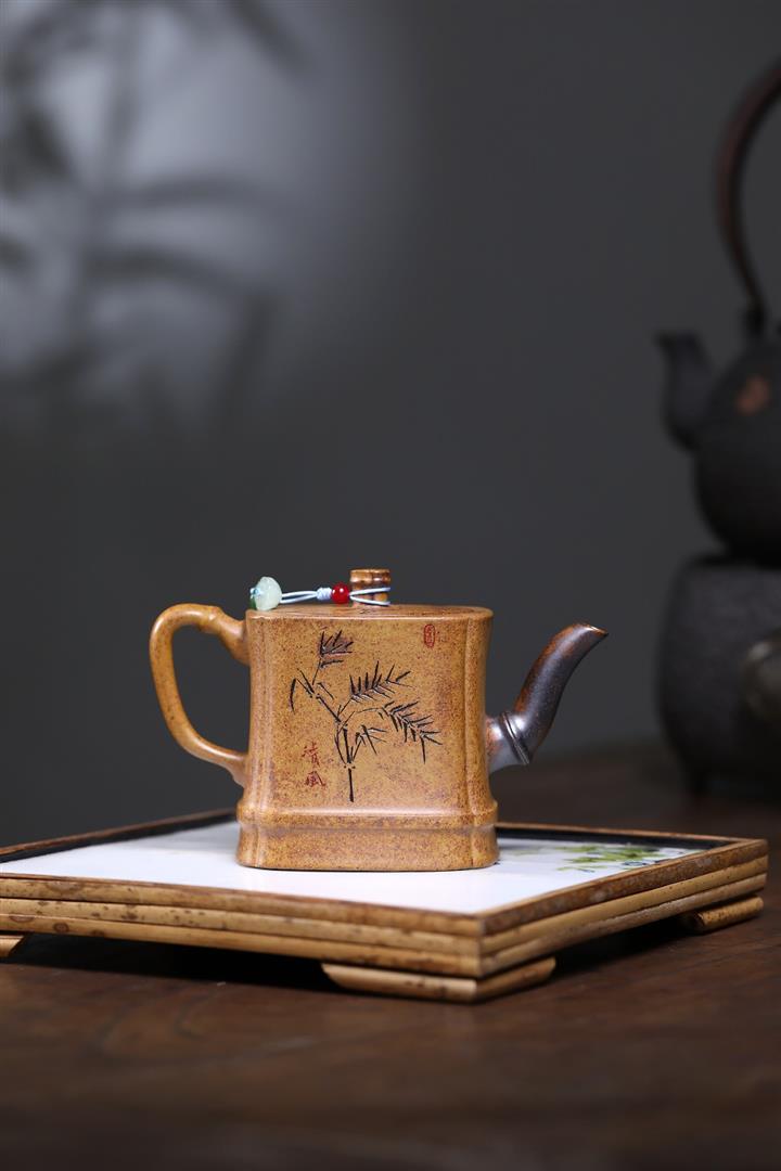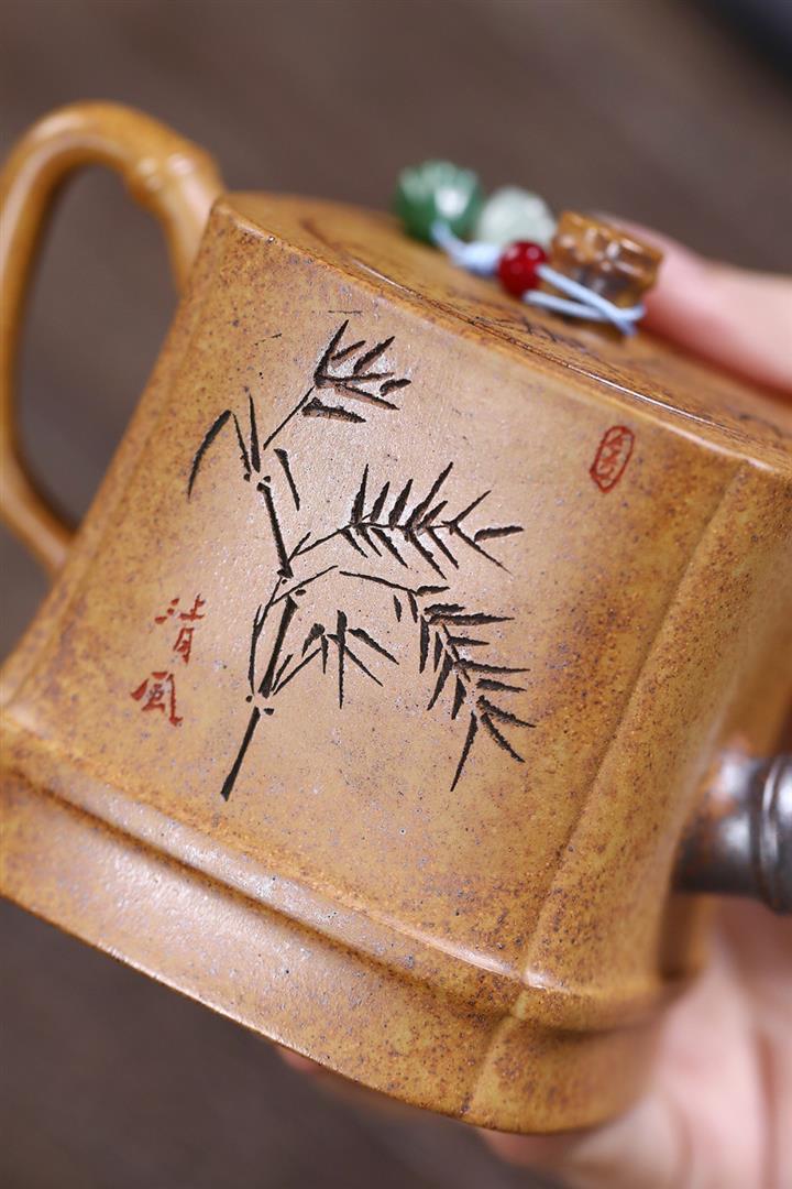 250cc原礦龍骨金砂勁竹四方泡茶壺POT9571