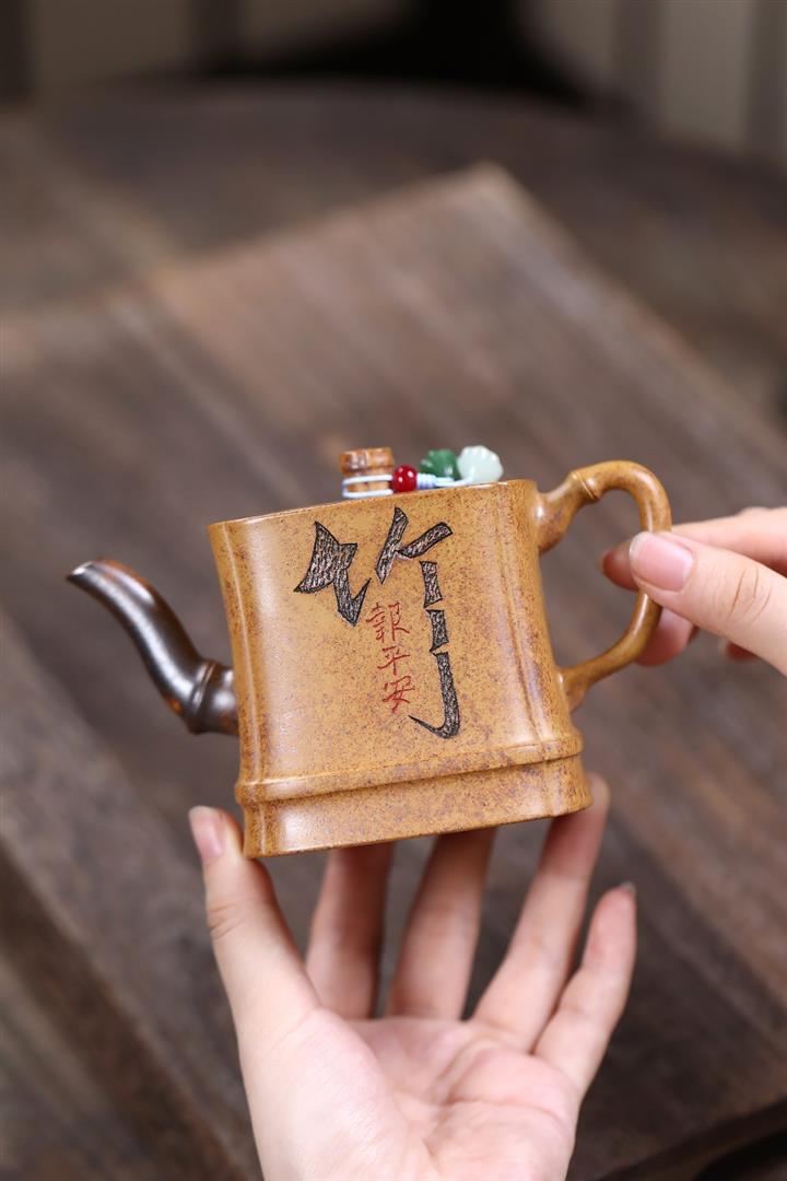 原礦百目紫泥太湖石竹段紫砂壺POT4979