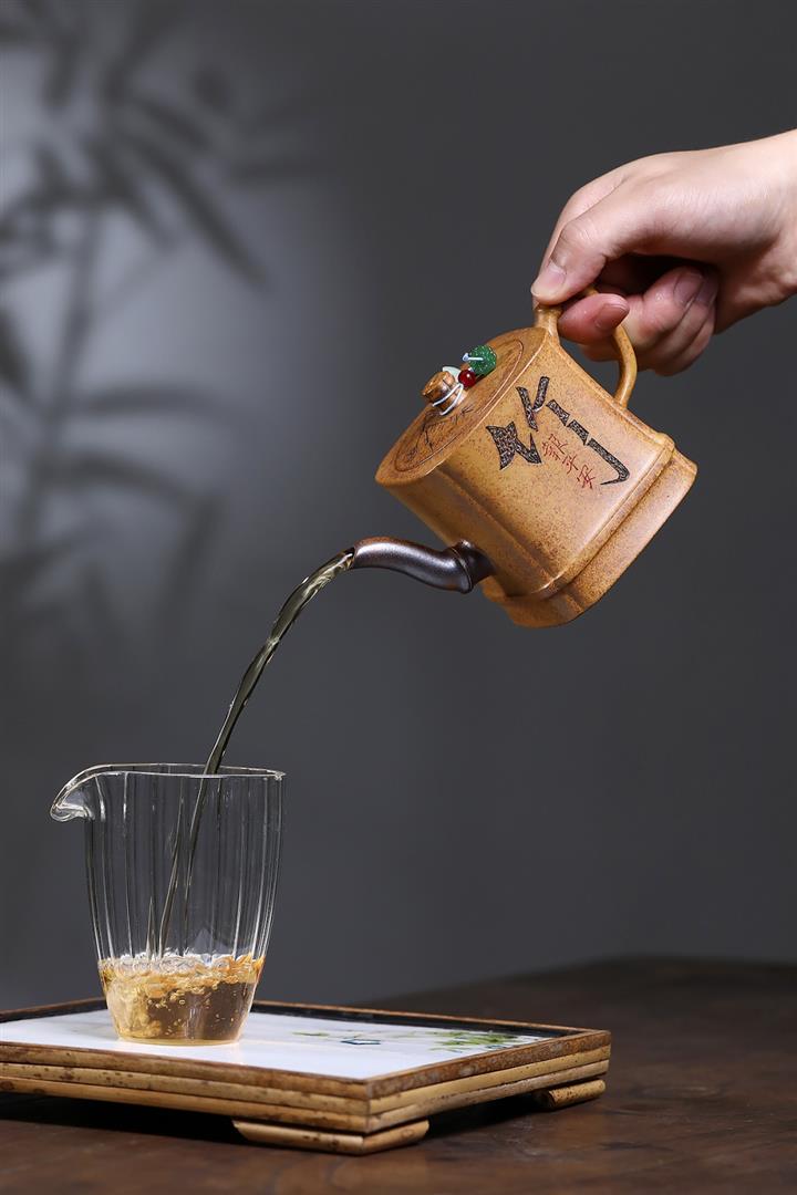 【作品介紹】此款壺形線條流暢,壺把,壺嘴,壺身壹氣呵成栩栩如生,是收藏把玩的好壺,泥料色澤古樸典雅,日久使用,漸露鋒芒,養成變化快,溫潤莊重,用其泡茶,使用的年代久,壺身就溫潤,泡出來的茶湯也就醇郁芳馨。