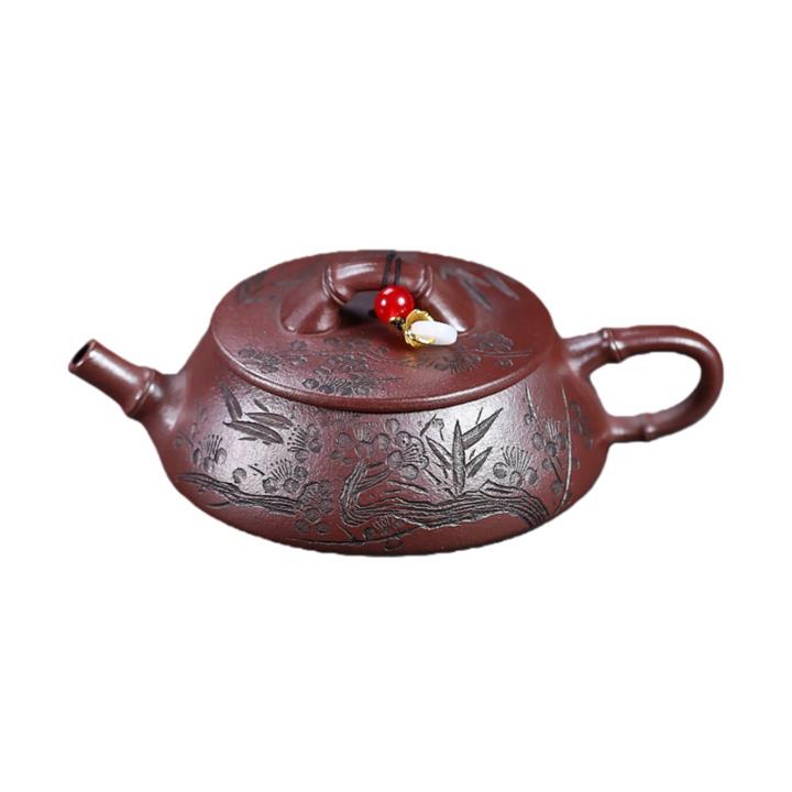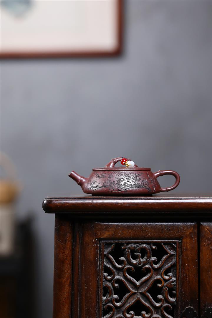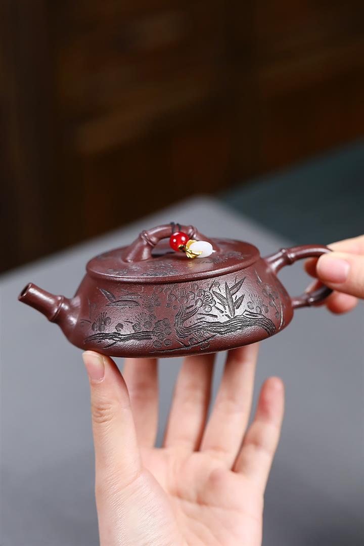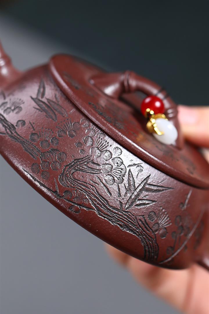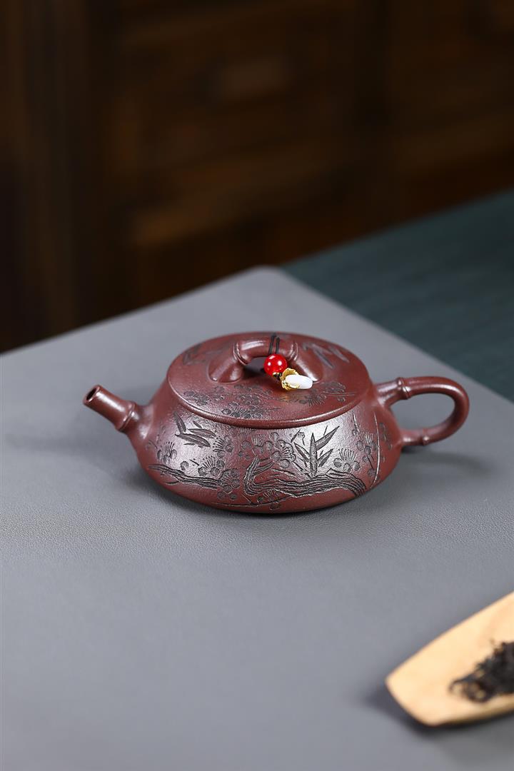 400cc原礦墨綠泥刻繪如意松趣茶壺POT8304