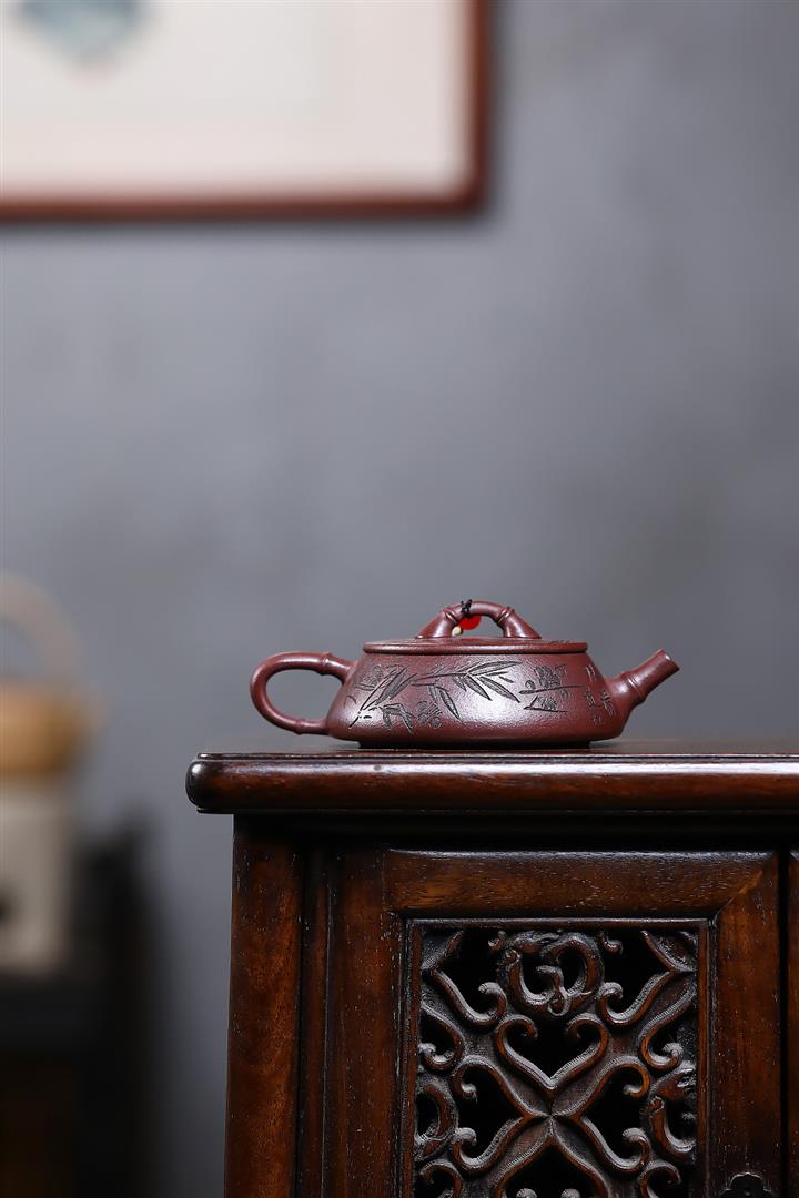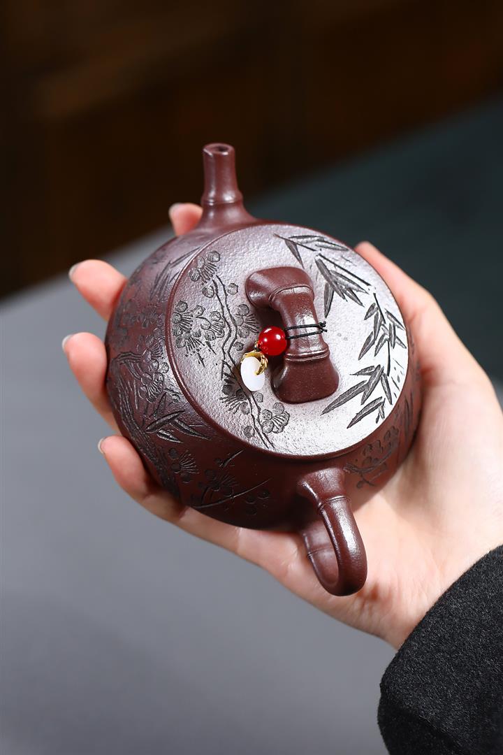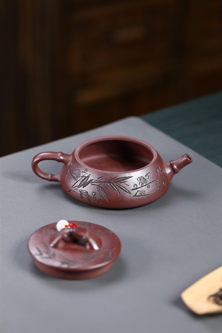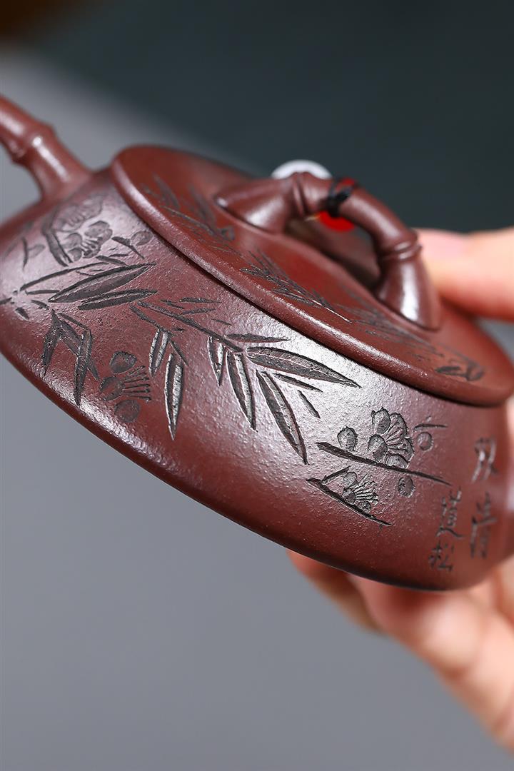 350cc原礦墨綠泥通身刻竹之清雅茶壺POT8302