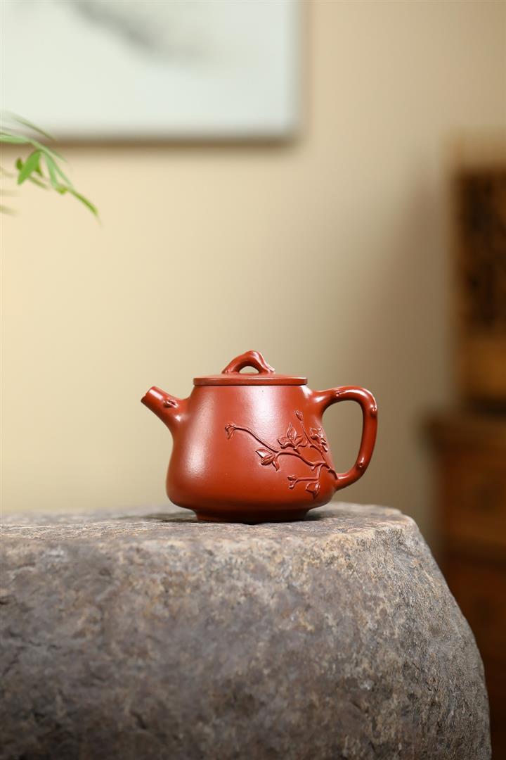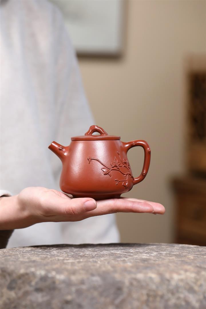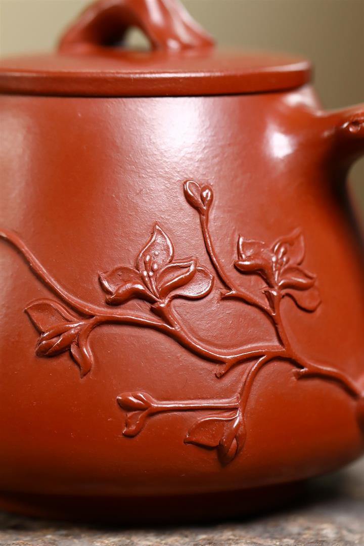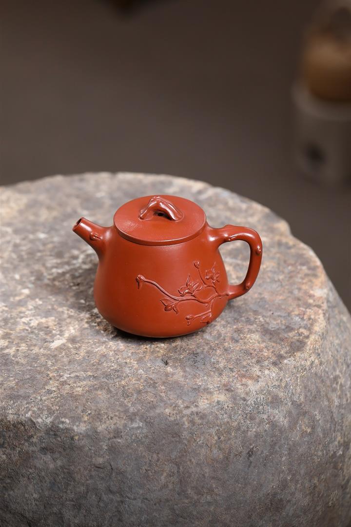 原礦紫泥刻繪傲梅容天茶壺POT7055