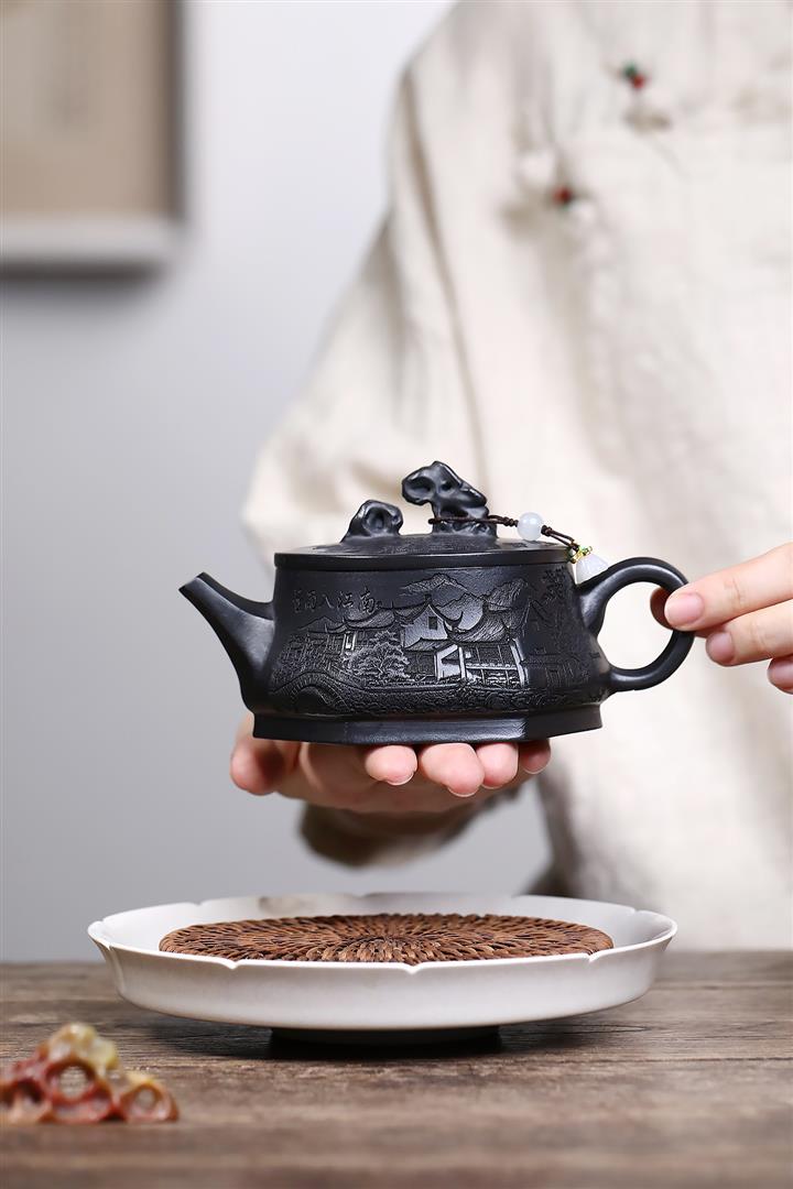 原礦高溫沈香泥竹影茶壺POT7611