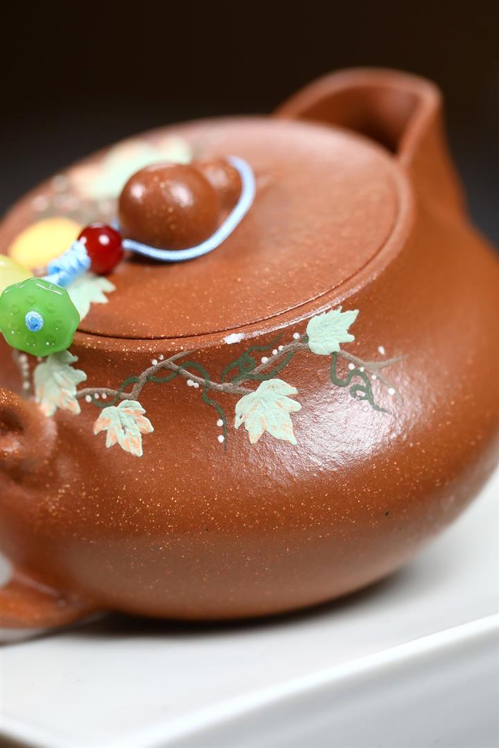 【泥料特點】砂土氣重,似淳實農民,日久使用,漸露鋒芒,養成變化,溫潤莊重。紫砂是壹種雙重氣孔結構的多孔性材質,氣孔微細,密度高。用紫砂壺沏茶,不失原味,且香不渙散,得茶之真香真味。紫砂使用越久,壺身色澤越發光亮照人,氣韻溫雅。紫砂壺長久使用器身會因撫摸擦拭,變得越發溫潤光澤。