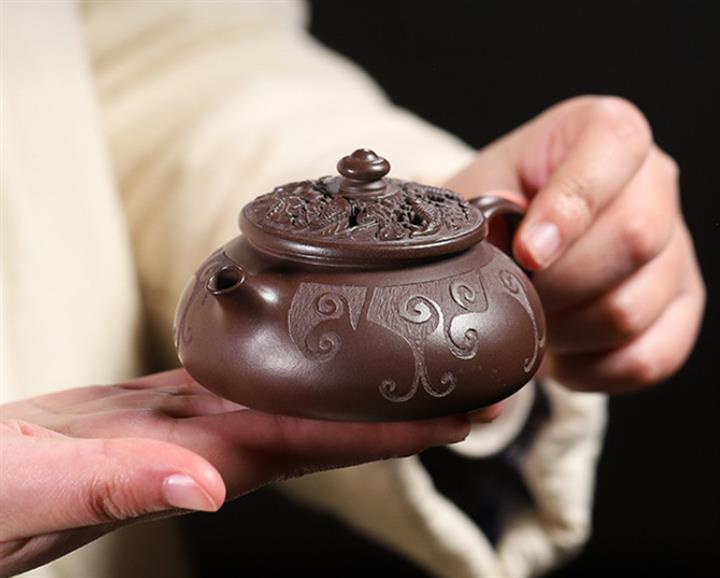 【泥料特點】砂土氣重,似淳實農民,日久使用,漸露鋒芒,養成變化,溫潤莊重。紫砂是壹種雙重氣孔結構的多孔性材質,氣孔微細,密度高。用紫砂壺沏茶,不失原味,且香不渙散,得茶之真香真味。紫砂使用越久,壺身色澤越發光亮照人,氣韻溫雅。紫砂壺長久使用器身會因撫摸擦拭,變得越發溫潤光澤。