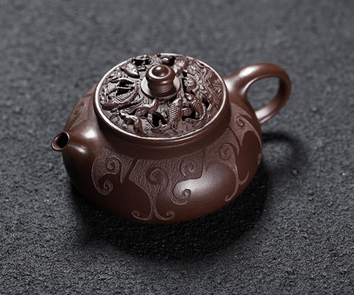 150cc原礦茄皮紫泥錦鯉寒江泡茶壺POT9616