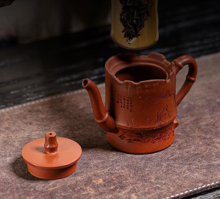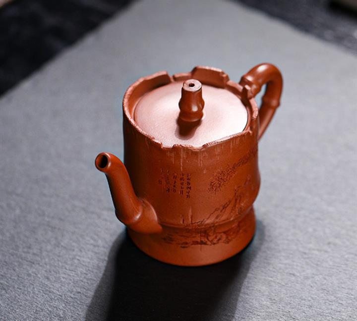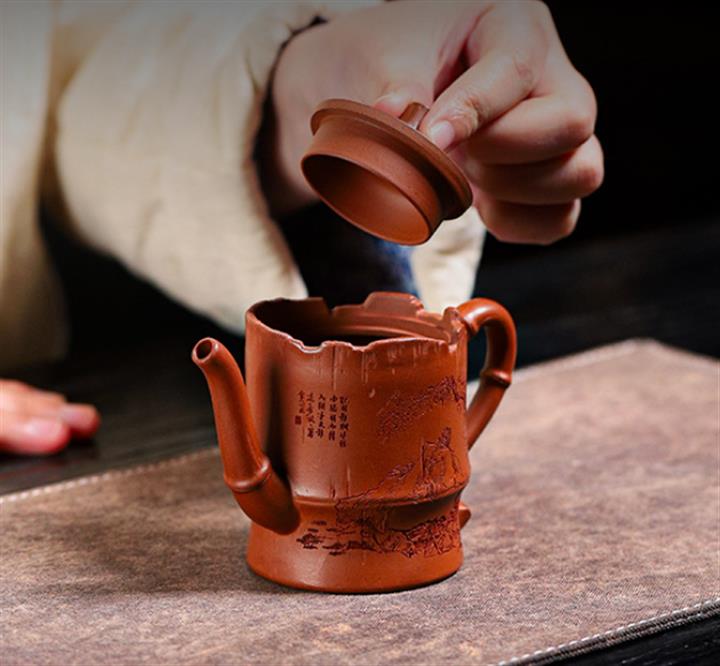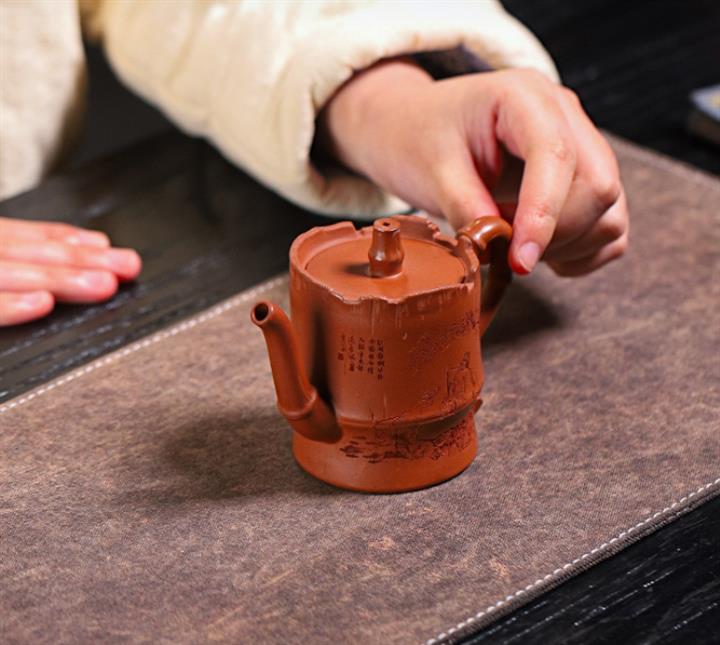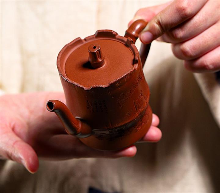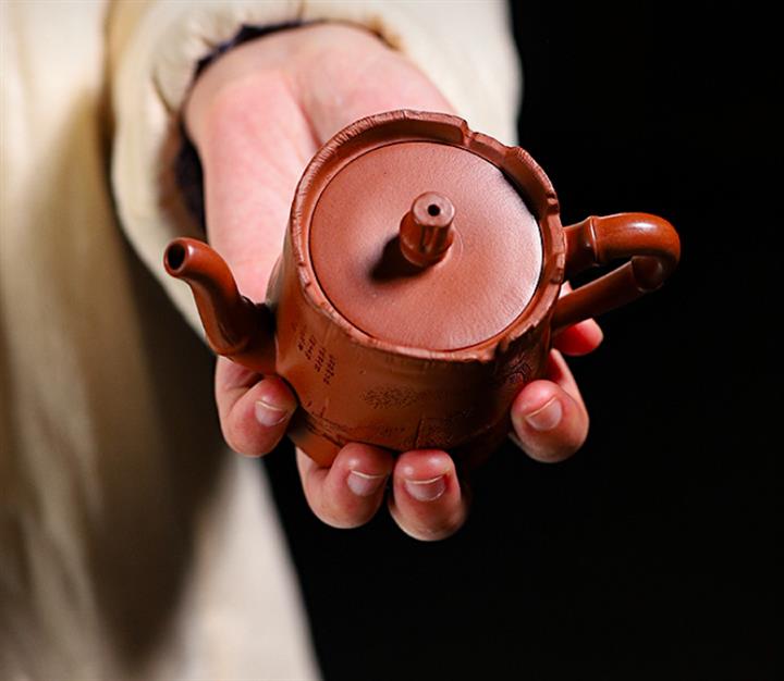 【泥料特點】砂土氣重,似淳實農民,日久使用,漸露鋒芒,養成變化,溫潤莊重。紫砂是壹種雙重氣孔結構的多孔性材質,氣孔微細,密度高。用紫砂壺沏茶,不失原味,且香不渙散,得茶之真香真味。紫砂使用越久,壺身色澤越發光亮照人,氣韻溫雅。紫砂壺長久使用器身會因撫摸擦拭,變得越發溫潤光澤。