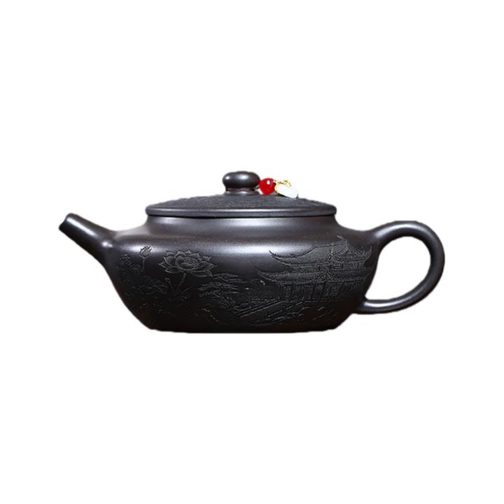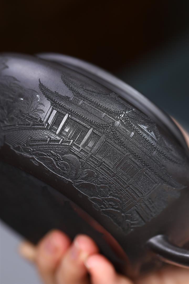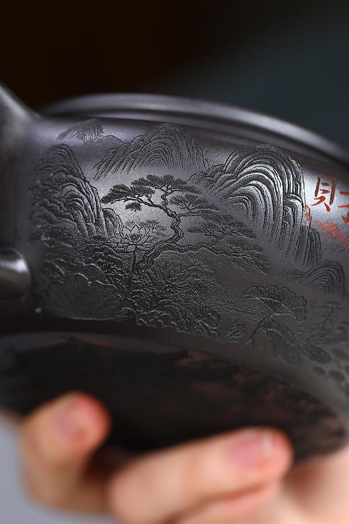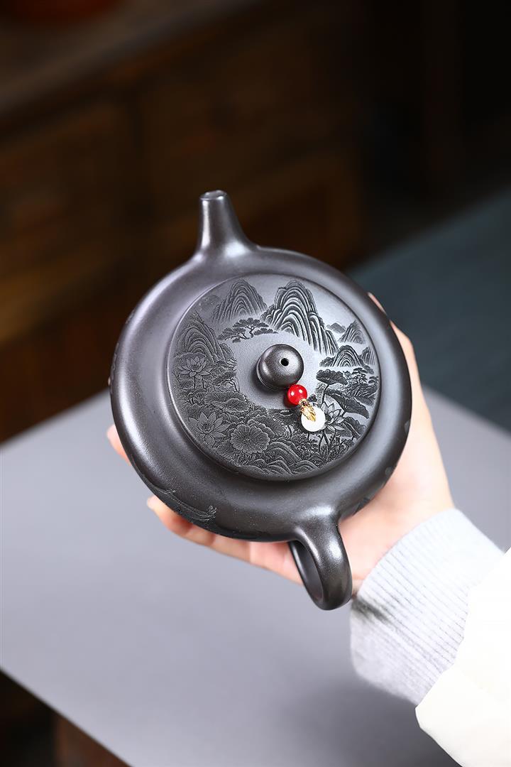 手工紫砂壺大品紫砂茶具原礦黑泥如意壺pot3682