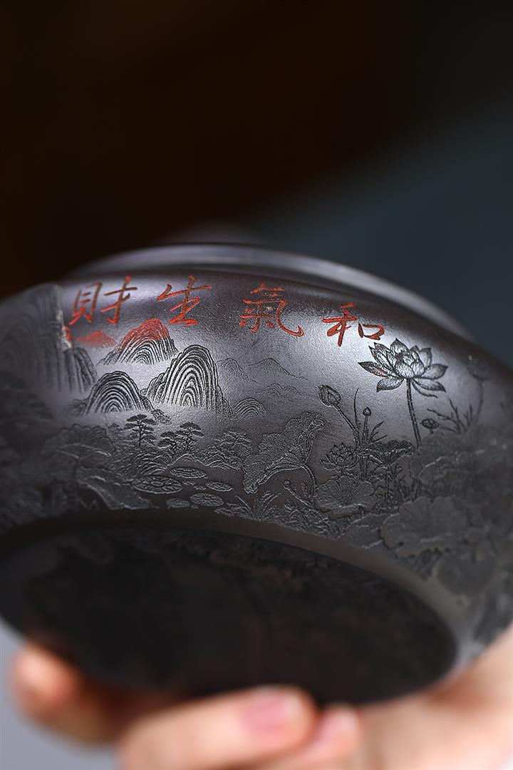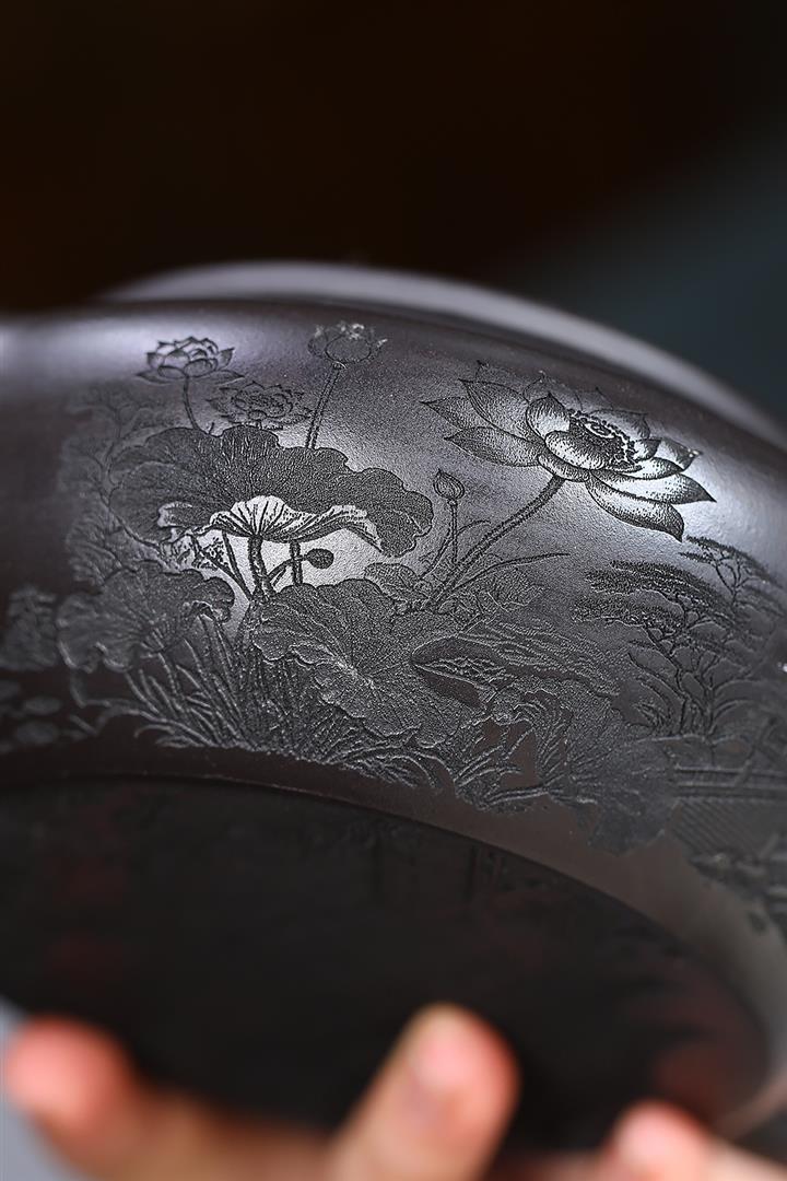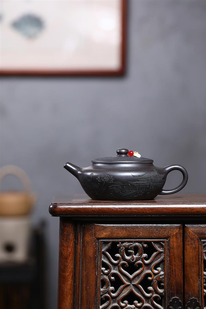 全手工刻繪原礦紫泥納財紫砂壺250cc pot3665