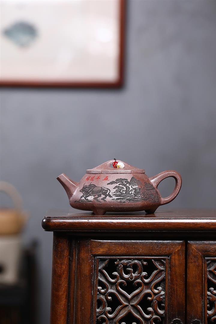【作品介紹】此款壺形線條流暢,壺把,壺嘴,壺身壹氣呵成栩栩如生,是收藏把玩的好壺,泥料色澤古樸典雅,日久使用,漸露鋒芒,養成變化快,溫潤莊重,用其泡茶,使用的年代久,壺身就溫潤,泡出來的茶湯也就醇郁芳馨。