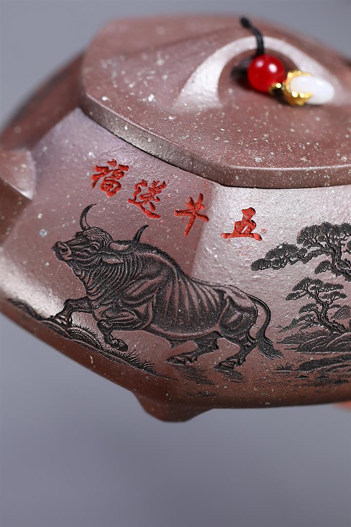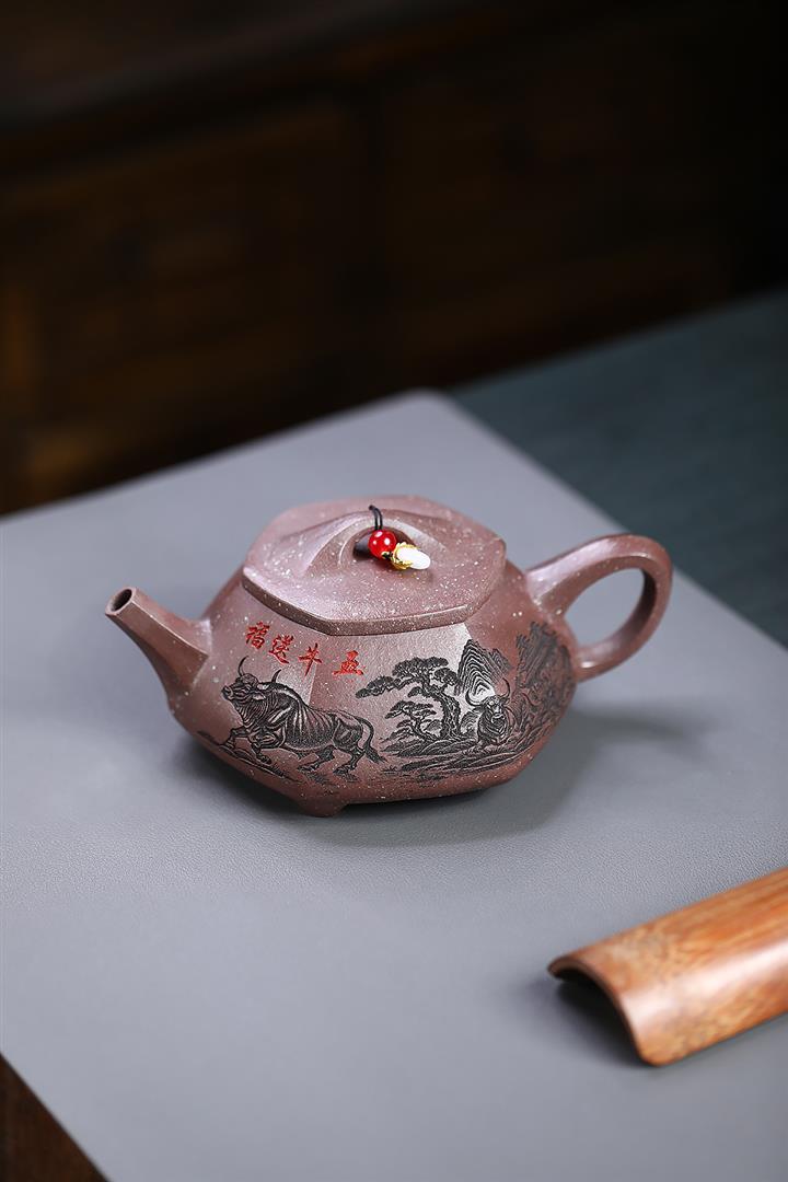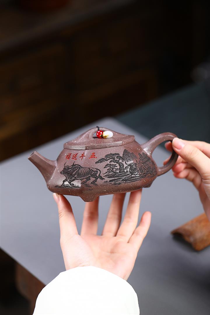 390cc原礦雪花泥五牛送福石瓢泡茶壺POT9641