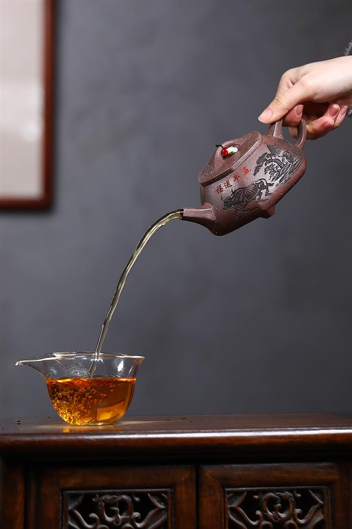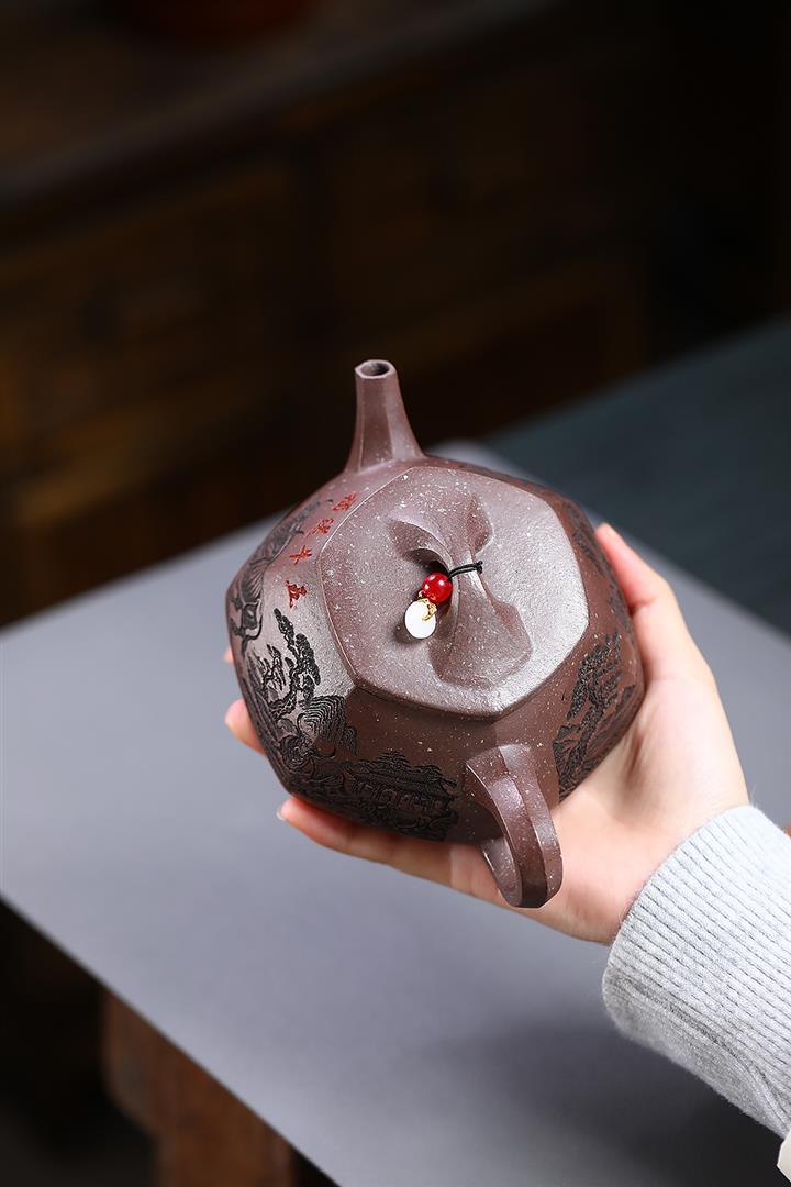 【泥料特點】砂土氣重,似淳實農民,日久使用,漸露鋒芒,養成變化,溫潤莊重。紫砂是壹種雙重氣孔結構的多孔性材質,氣孔微細,密度高。用紫砂壺沏茶,不失原味,且香不渙散,得茶之真香真味。紫砂使用越久,壺身色澤越發光亮照人,氣韻溫雅。紫砂壺長久使用器身會因撫摸擦拭,變得越發溫潤光澤。
