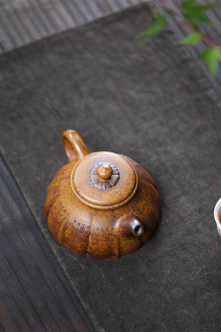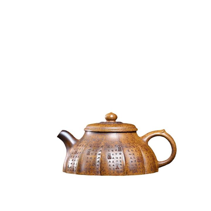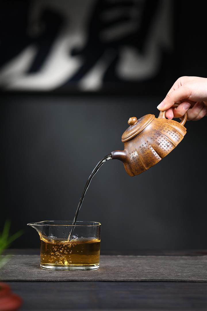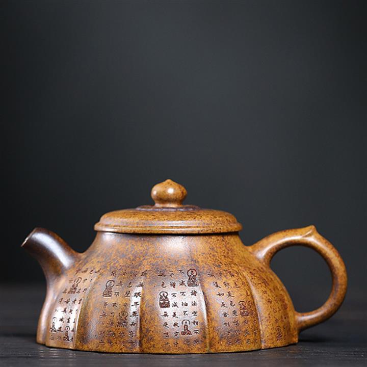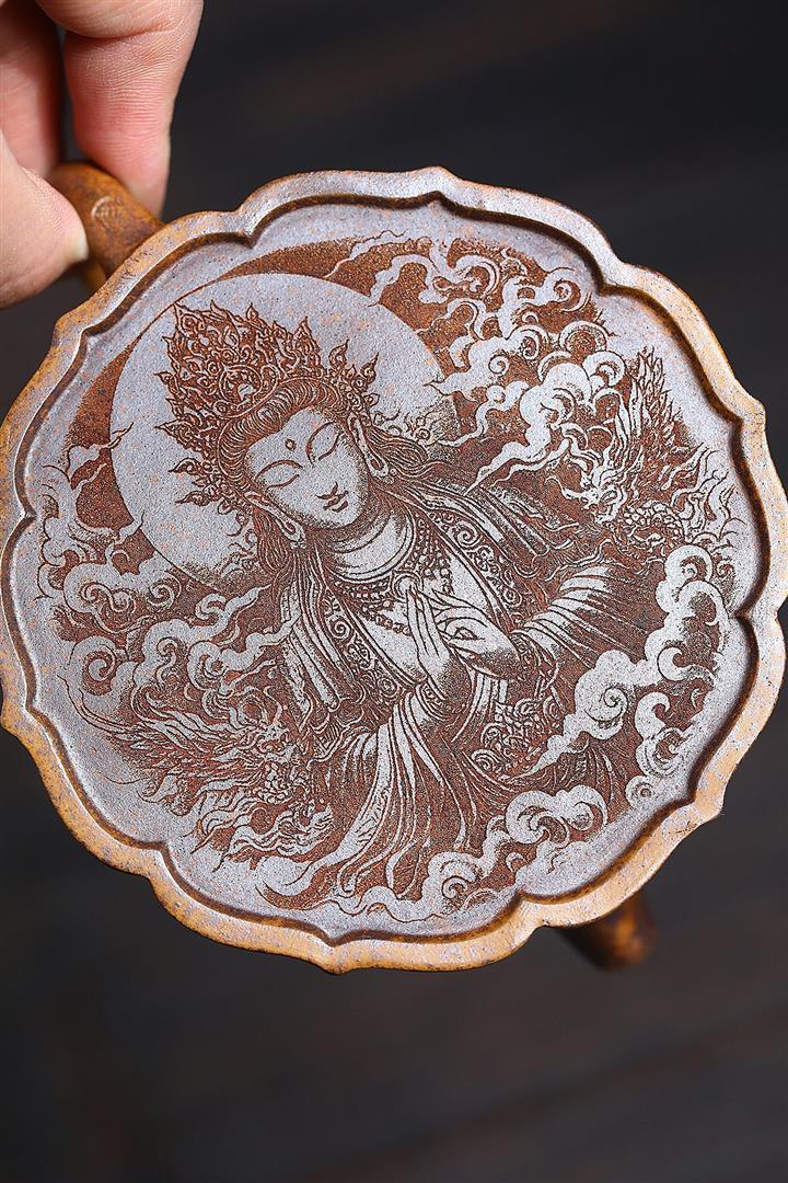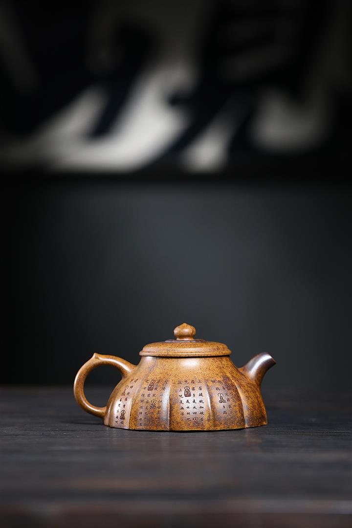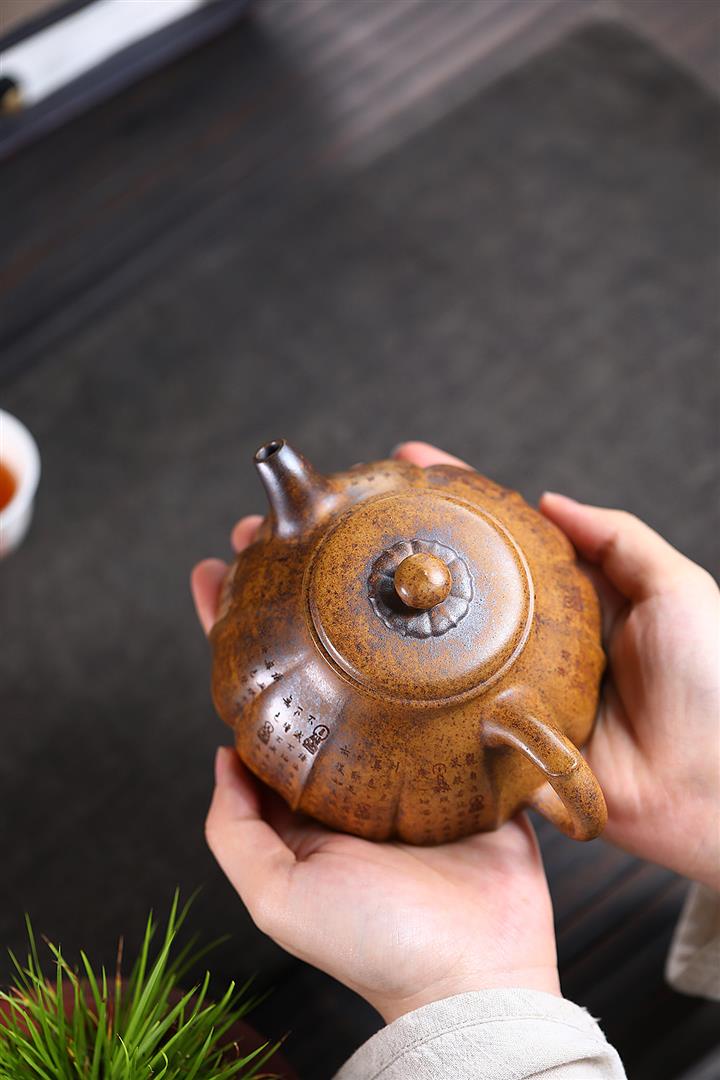 紫砂壺稀有龍血砂石瓢壺純手工刻繪POT3922