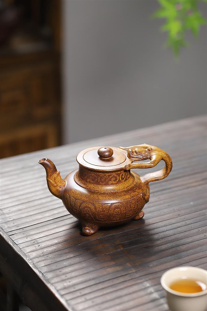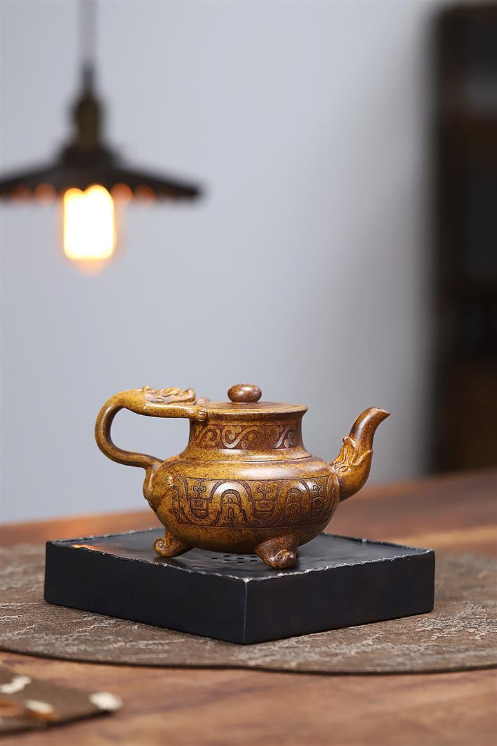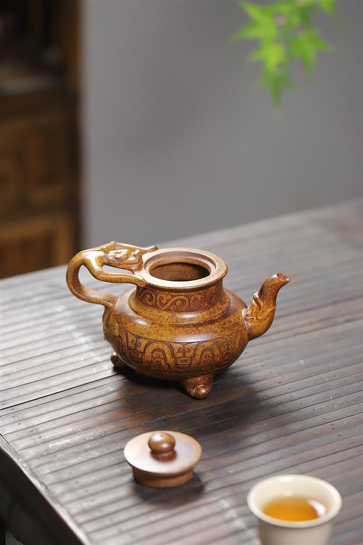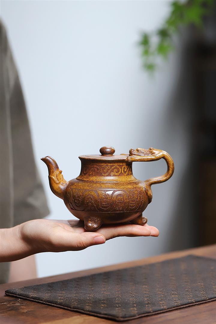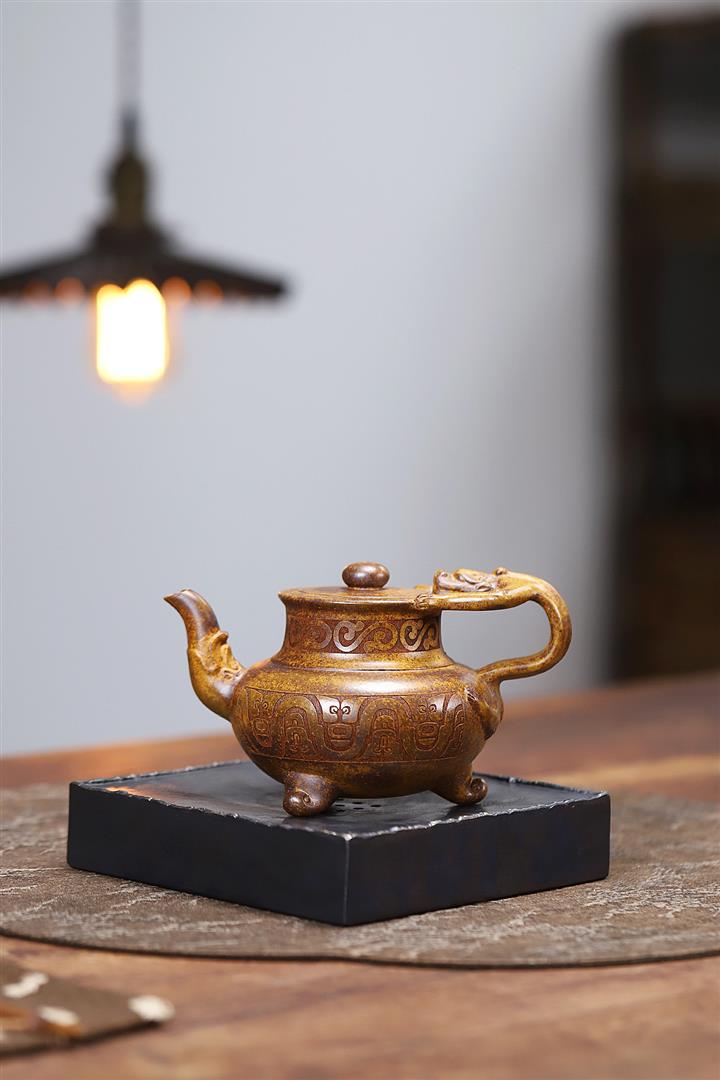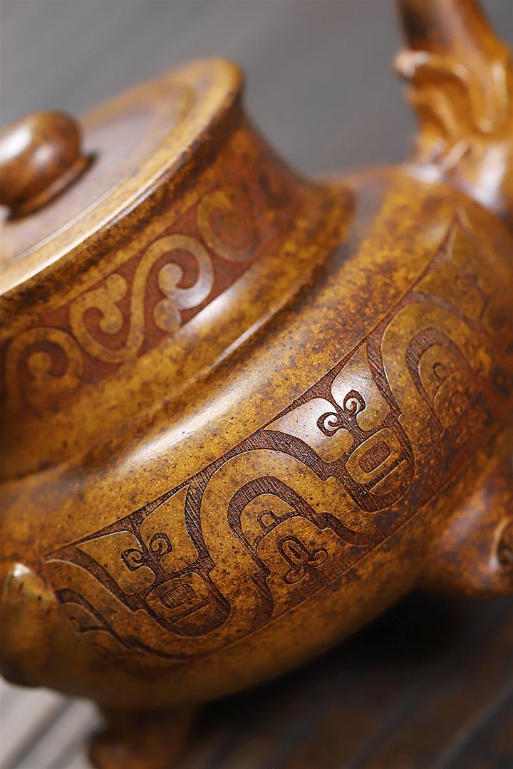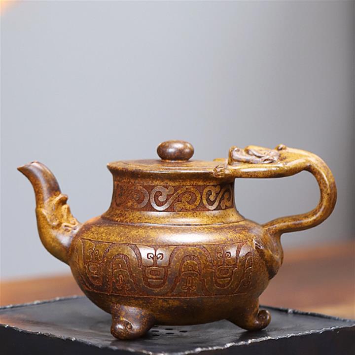 原礦古法沈香泥三足祥龍茶壺POT7507