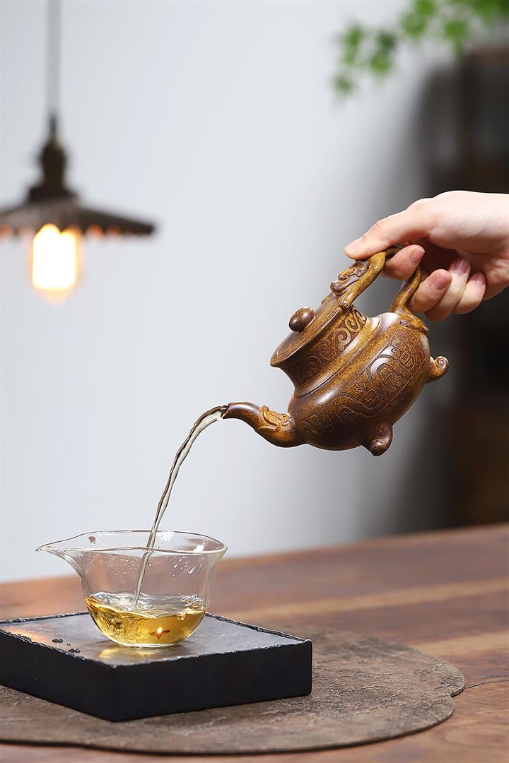【泥料特點】砂土氣重,似淳實農民,日久使用,漸露鋒芒,養成變化,溫潤莊重。紫砂是壹種雙重氣孔結構的多孔性材質,氣孔微細,密度高。用紫砂壺沏茶,不失原味,且香不渙散,得茶之真香真味。紫砂使用越久,壺身色澤越發光亮照人,氣韻溫雅。紫砂壺長久使用器身會因撫摸擦拭,變得越發溫潤光澤。