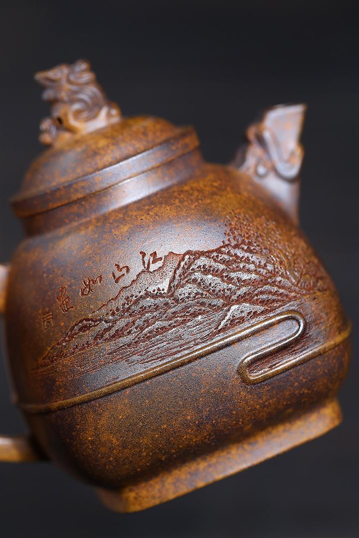 390cc原礦老紫泥六方福獅獻瑞茶壺POT9525