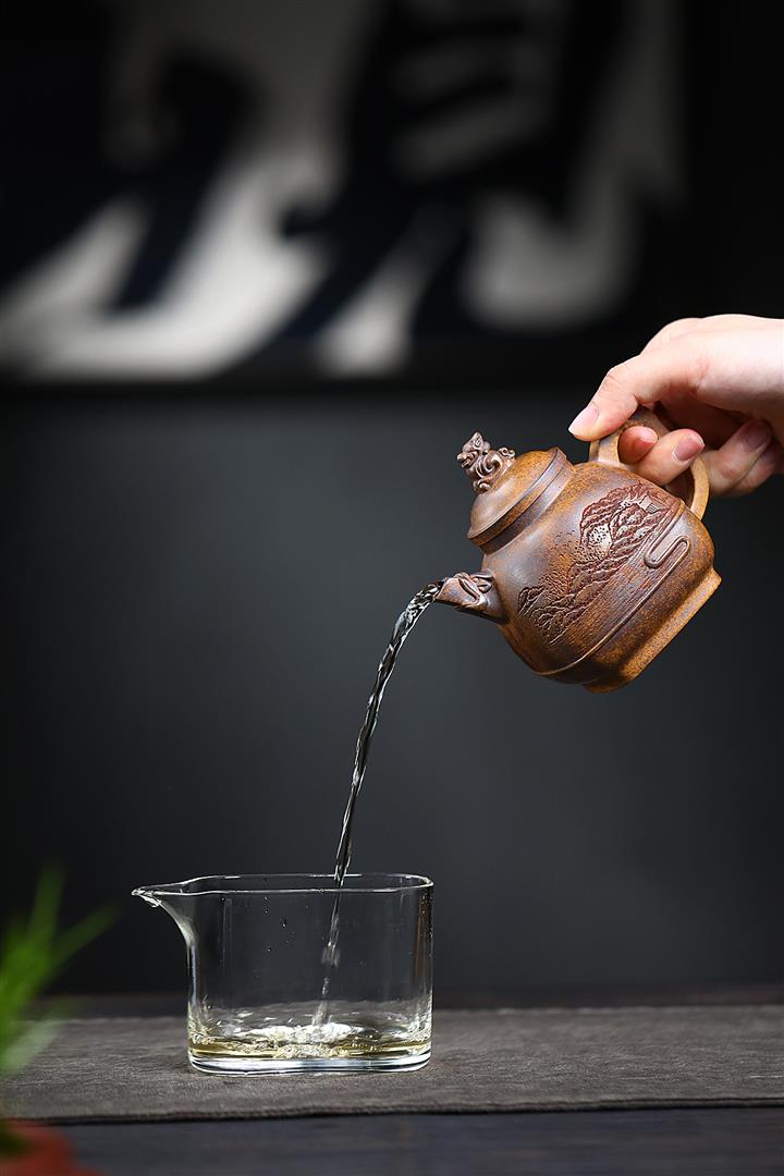 【泥料特點】砂土氣重,似淳實農民,日久使用,漸露鋒芒,養成變化,溫潤莊重。紫砂是壹種雙重氣孔結構的多孔性材質,氣孔微細,密度高。用紫砂壺沏茶,不失原味,且香不渙散,得茶之真香真味。紫砂使用越久,壺身色澤越發光亮照人,氣韻溫雅。紫砂壺長久使用器身會因撫摸擦拭,變得越發溫潤光澤。