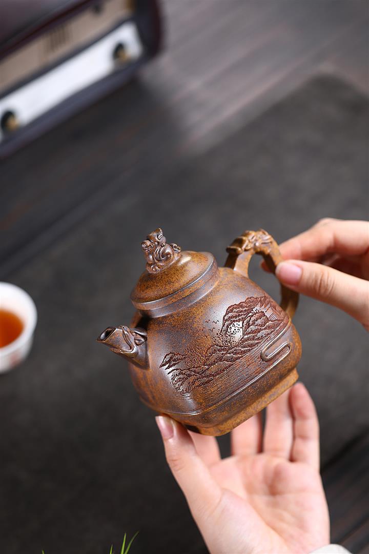 【作品介紹】此款壺形線條流暢,壺把,壺嘴,壺身壹氣呵成栩栩如生,是收藏把玩的好壺,泥料色澤古樸典雅,日久使用,漸露鋒芒,養成變化快,溫潤莊重,用其泡茶,使用的年代久,壺身就溫潤,泡出來的茶湯也就醇郁芳馨。