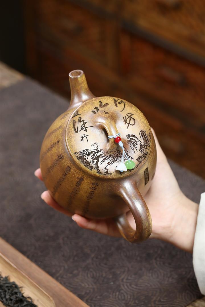 【作品介紹】此款壺形線條流暢,壺把,壺嘴,壺身壹氣呵成栩栩如生,是收藏把玩的好壺,泥料色澤古樸典雅,日久使用,漸露鋒芒,養成變化快,溫潤莊重,用其泡茶,使用的年代久,壺身就溫潤,泡出來的茶湯也就醇郁芳馨。