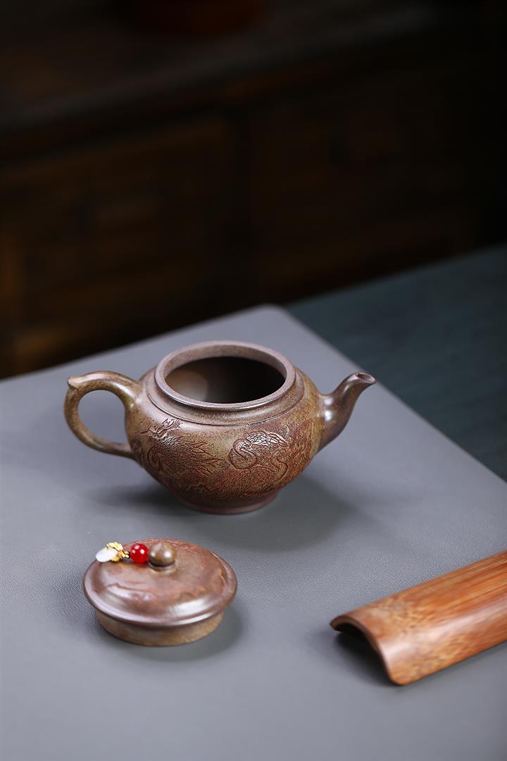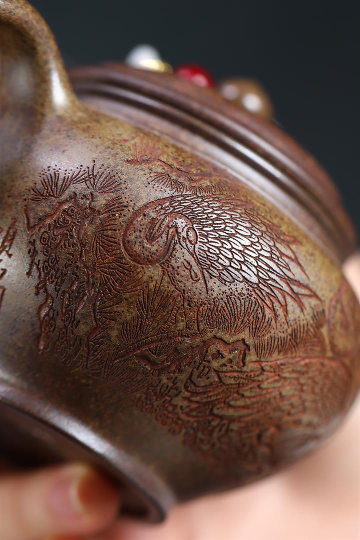 原礦古烏泥滿刻花鳥西施茶壺POT7817