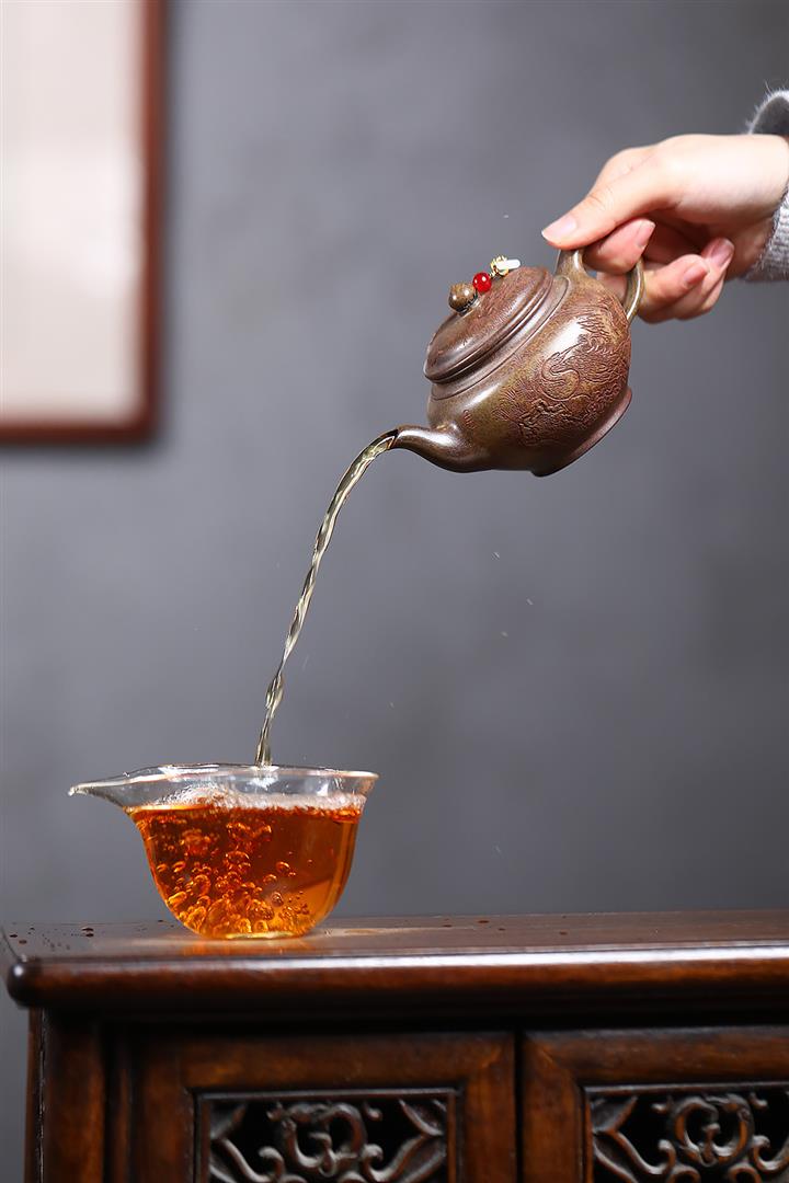 【作品介紹】此款壺形線條流暢,壺把,壺嘴,壺身壹氣呵成栩栩如生,是收藏把玩的好壺,泥料色澤古樸典雅,日久使用,漸露鋒芒,養成變化快,溫潤莊重,用其泡茶,使用的年代久,壺身就溫潤,泡出來的茶湯也就醇郁芳馨。