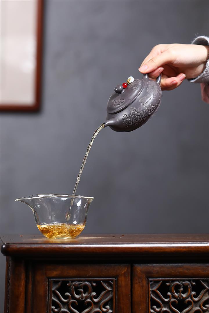 【泥料特點】砂土氣重,似淳實農民,日久使用,漸露鋒芒,養成變化,溫潤莊重。紫砂是壹種雙重氣孔結構的多孔性材質,氣孔微細,密度高。用紫砂壺沏茶,不失原味,且香不渙散,得茶之真香真味。紫砂使用越久,壺身色澤越發光亮照人,氣韻溫雅。紫砂壺長久使用器身會因撫摸擦拭,變得越發溫潤光澤。