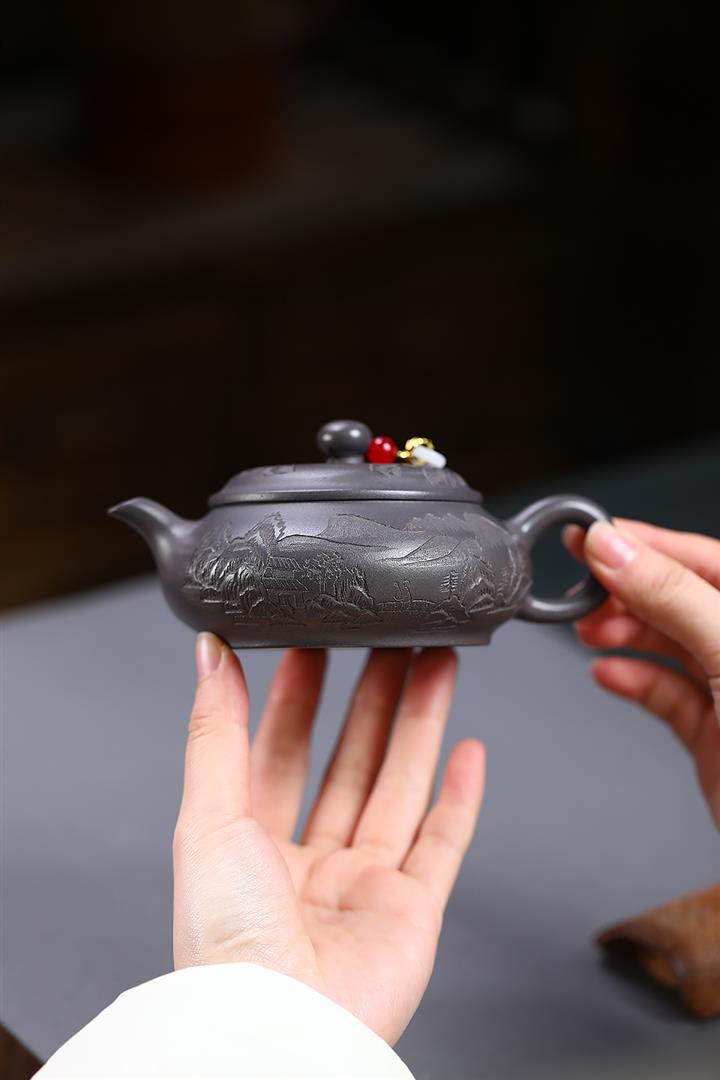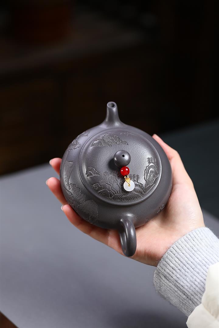 200cc原礦青灰段泥山水明爐泡茶壺POT9699