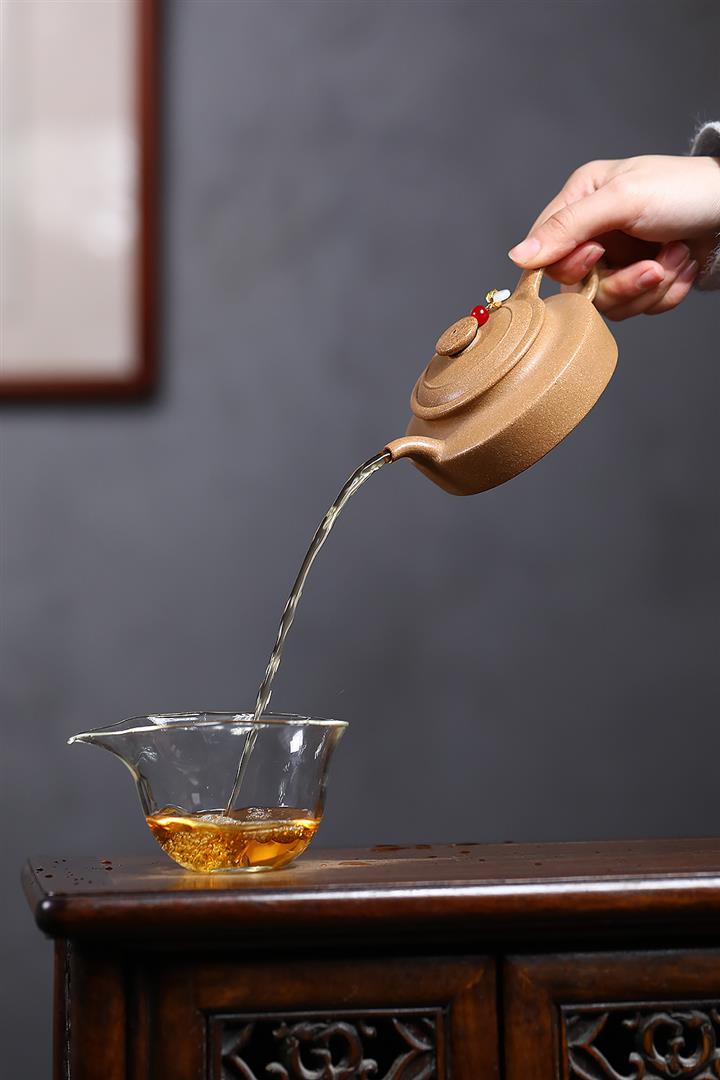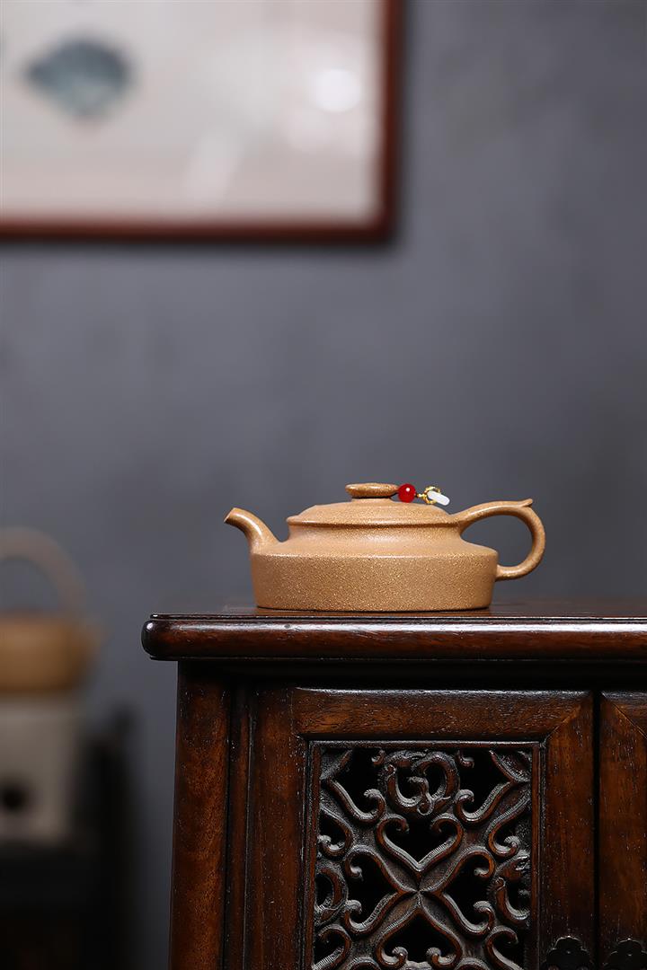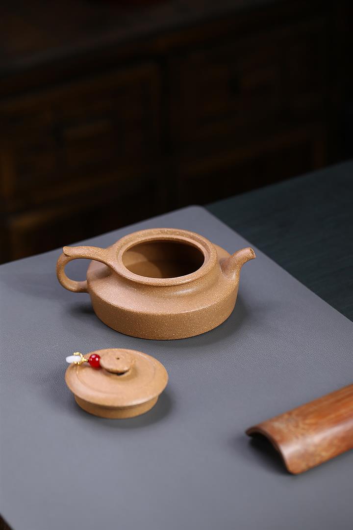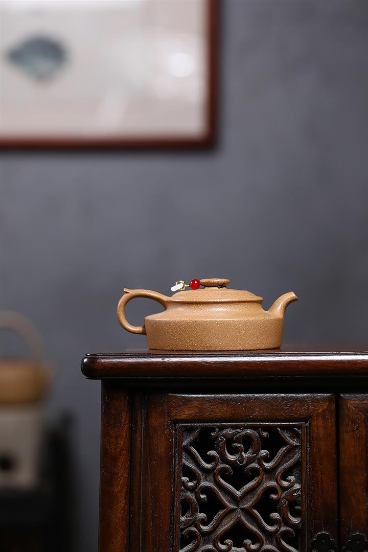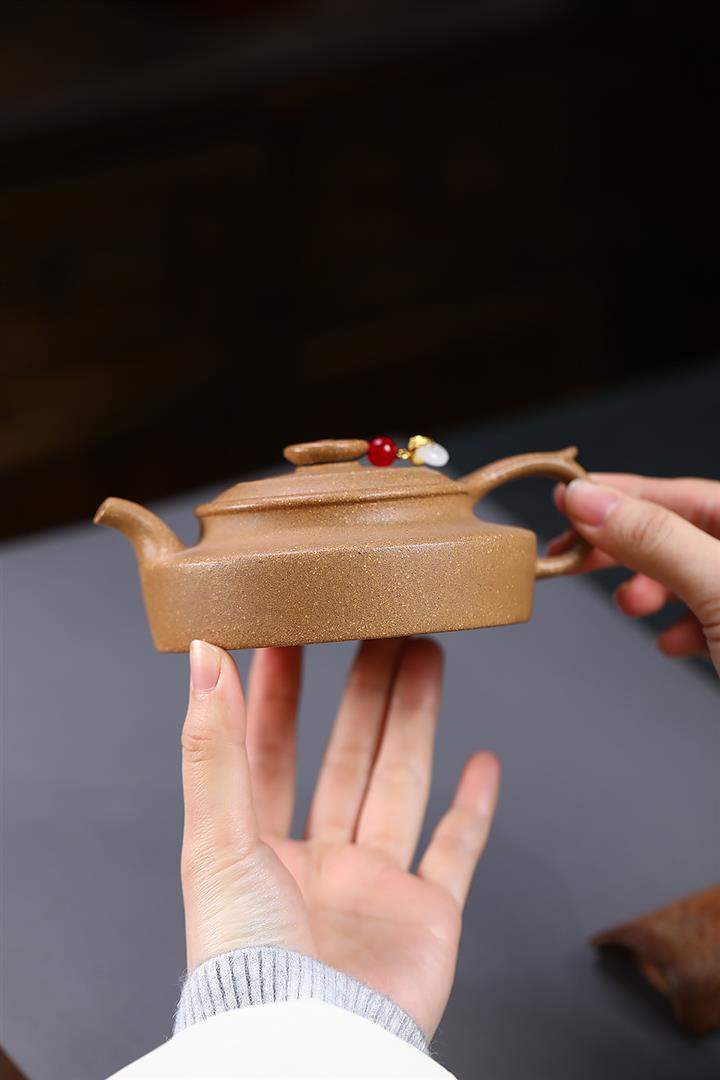 【泥料特點】砂土氣重,似淳實農民,日久使用,漸露鋒芒,養成變化,溫潤莊重。紫砂是壹種雙重氣孔結構的多孔性材質,氣孔微細,密度高。用紫砂壺沏茶,不失原味,且香不渙散,得茶之真香真味。紫砂使用越久,壺身色澤越發光亮照人,氣韻溫雅。紫砂壺長久使用器身會因撫摸擦拭,變得越發溫潤光澤。