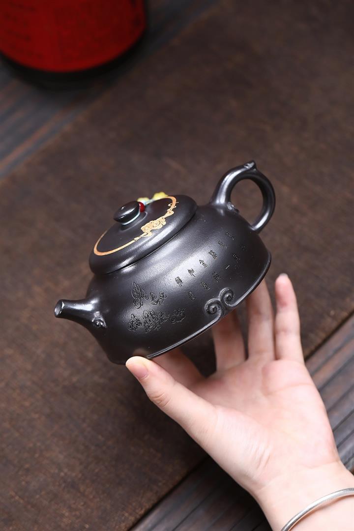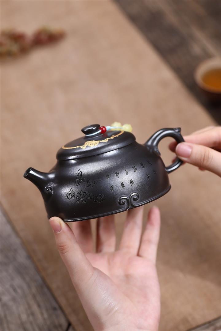 150cc原礦紫泥荷塘月色手抓泡茶壺POT9742