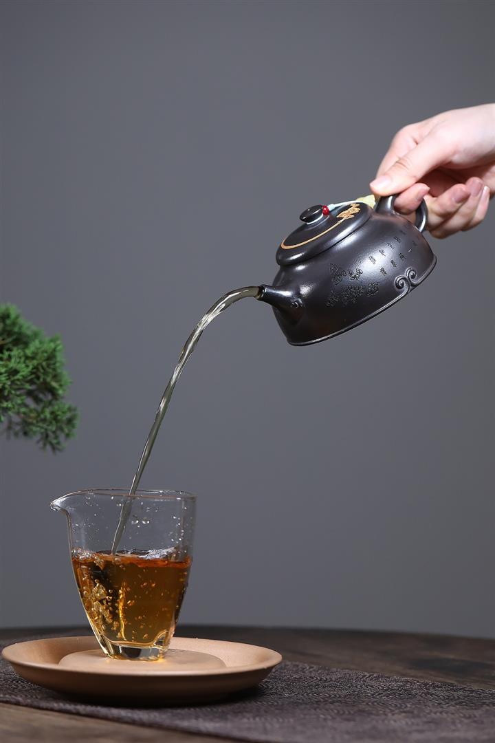 【泥料特點】砂土氣重,似淳實農民,日久使用,漸露鋒芒,養成變化,溫潤莊重。紫砂是壹種雙重氣孔結構的多孔性材質,氣孔微細,密度高。用紫砂壺沏茶,不失原味,且香不渙散,得茶之真香真味。紫砂使用越久,壺身色澤越發光亮照人,氣韻溫雅。紫砂壺長久使用器身會因撫摸擦拭,變得越發溫潤光澤。