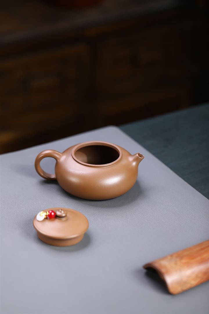 【作品介紹】此款壺形線條流暢,壺把,壺嘴,壺身壹氣呵成栩栩如生,是收藏把玩的好壺,泥料色澤古樸典雅,日久使用,漸露鋒芒,養成變化快,溫潤莊重,用其泡茶,使用的年代久,壺身就溫潤,泡出來的茶湯也就醇郁芳馨。
