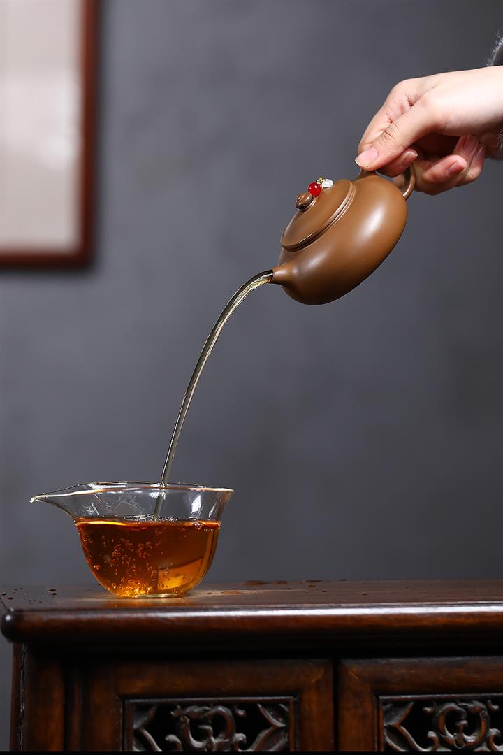 【泥料特點】砂土氣重,似淳實農民,日久使用,漸露鋒芒,養成變化,溫潤莊重。紫砂是壹種雙重氣孔結構的多孔性材質,氣孔微細,密度高。用紫砂壺沏茶,不失原味,且香不渙散,得茶之真香真味。紫砂使用越久,壺身色澤越發光亮照人,氣韻溫雅。紫砂壺長久使用器身會因撫摸擦拭,變得越發溫潤光澤。