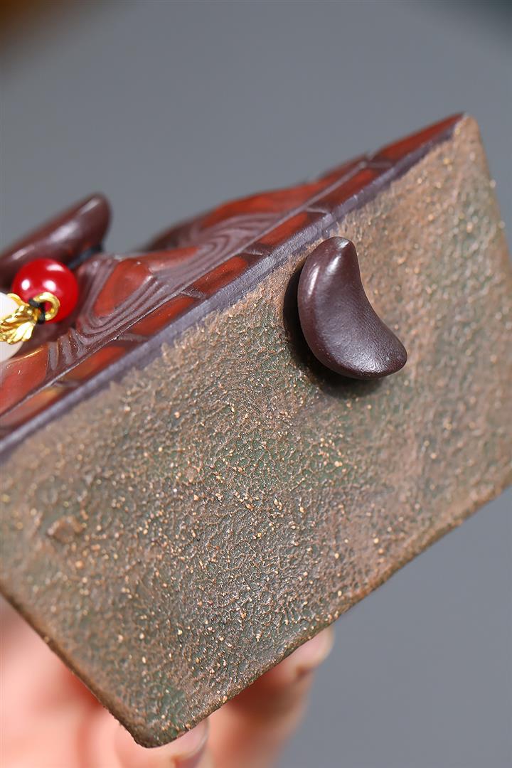 梅燈原礦龍血砂手工刻字畫POT4092