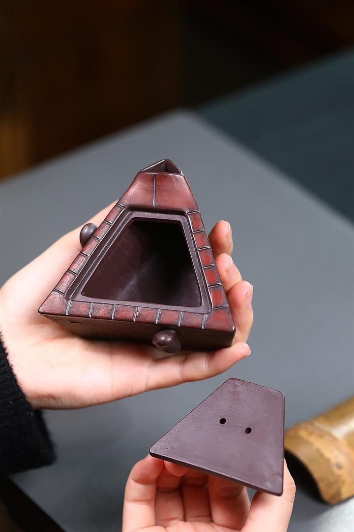 【泥料特點】砂土氣重,似淳實農民,日久使用,漸露鋒芒,養成變化,溫潤莊重。紫砂是壹種雙重氣孔結構的多孔性材質,氣孔微細,密度高。用紫砂壺沏茶,不失原味,且香不渙散,得茶之真香真味。紫砂使用越久,壺身色澤越發光亮照人,氣韻溫雅。紫砂壺長久使用器身會因撫摸擦拭,變得越發溫潤光澤。