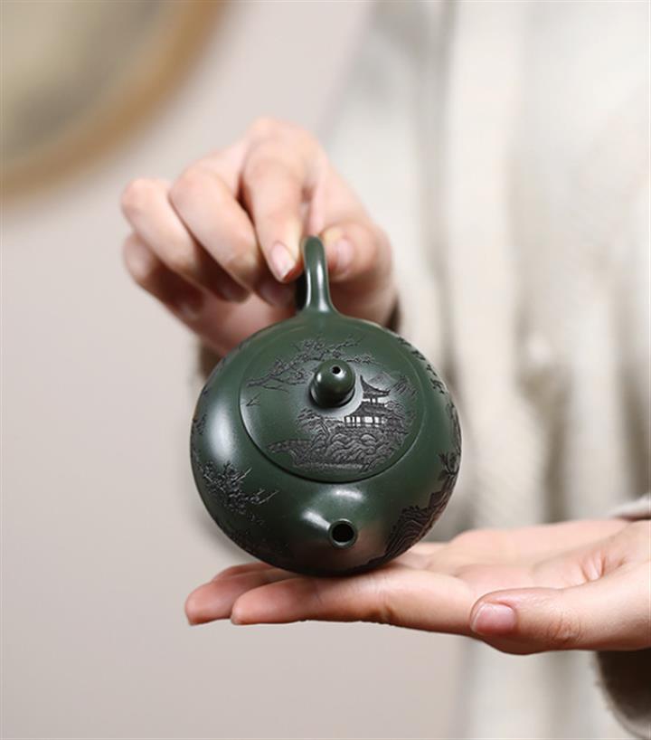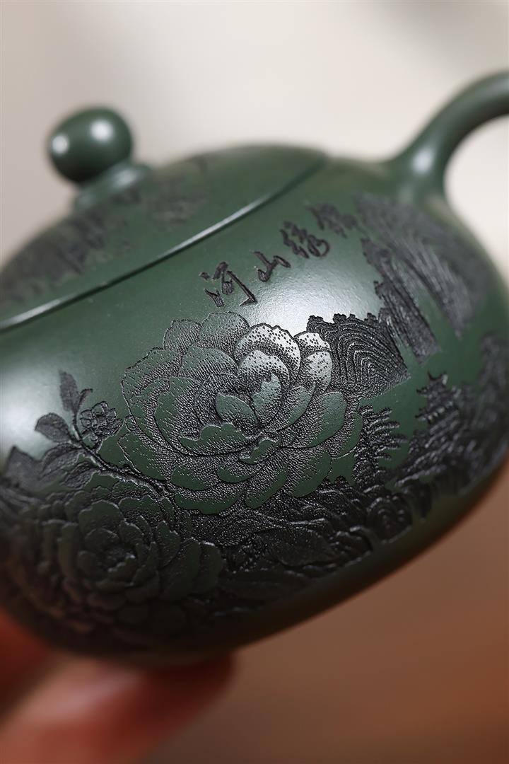 金鐘原礦龍背青手工刻字紫砂壺POT3933
