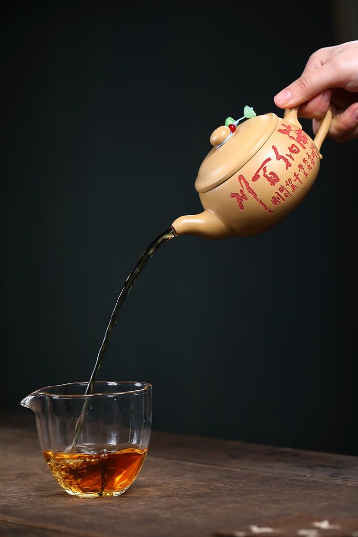 【泥料特點】砂土氣重,似淳實農民,日久使用,漸露鋒芒,養成變化,溫潤莊重。紫砂是壹種雙重氣孔結構的多孔性材質,氣孔微細,密度高。用紫砂壺沏茶,不失原味,且香不渙散,得茶之真香真味。紫砂使用越久,壺身色澤越發光亮照人,氣韻溫雅。紫砂壺長久使用器身會因撫摸擦拭,變得越發溫潤光澤。