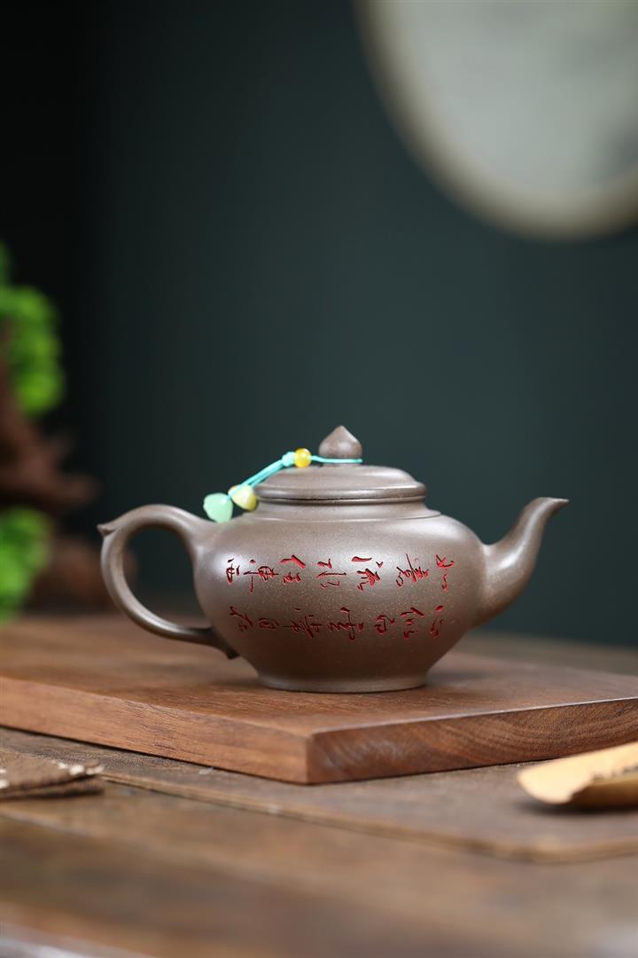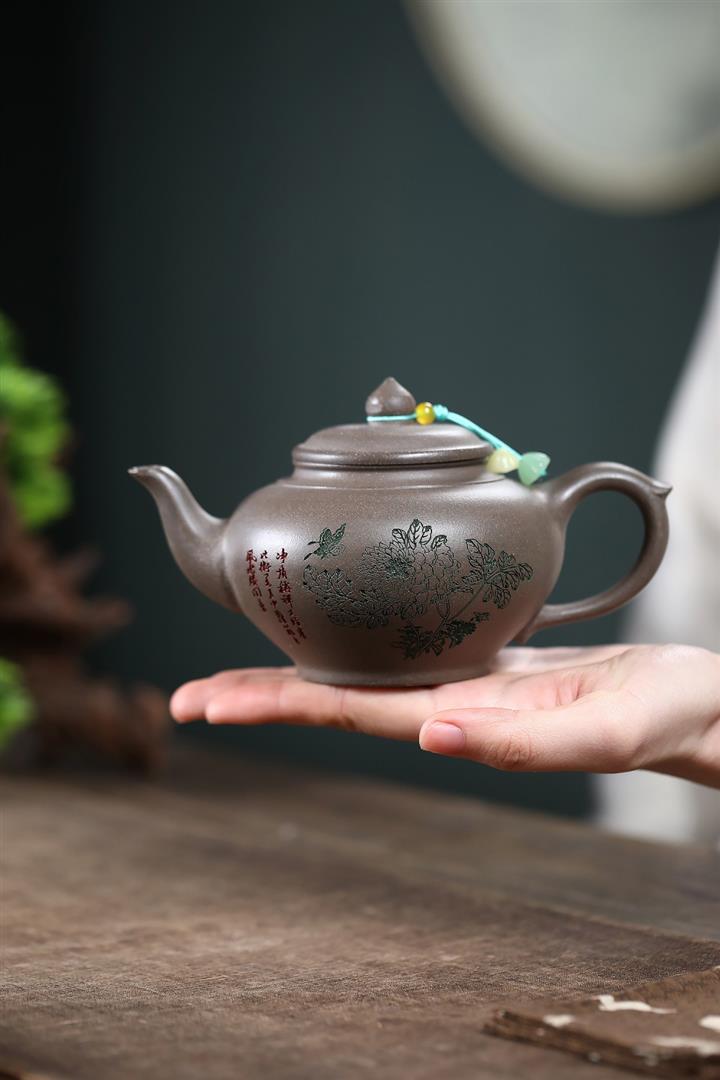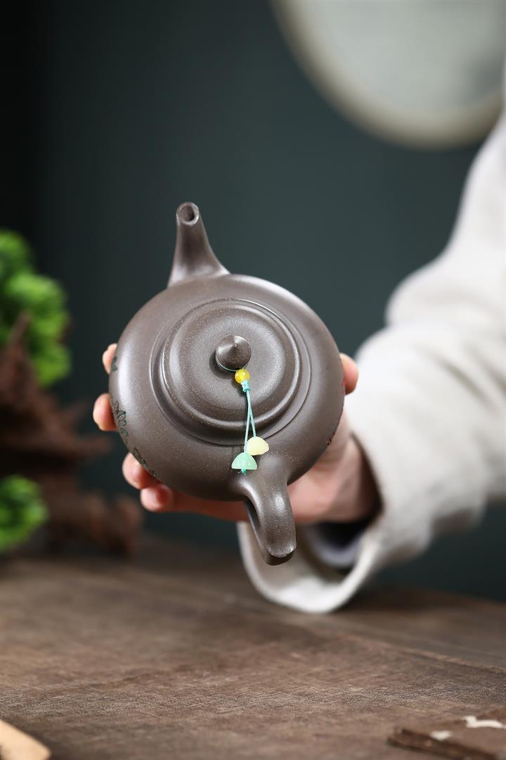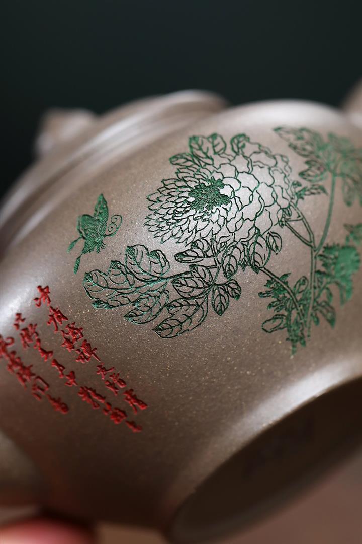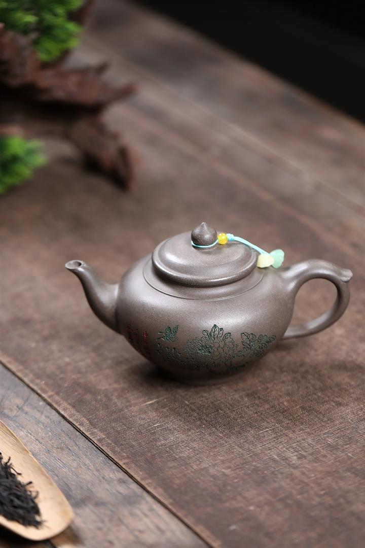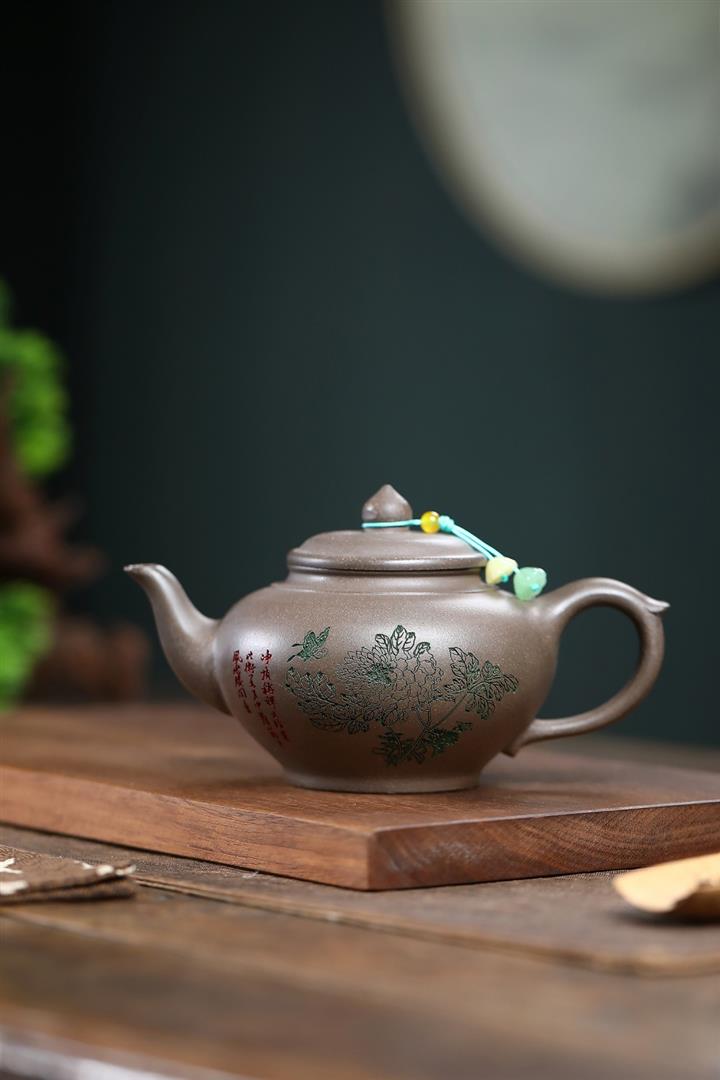 墨綠泥九齡君子蘭幾何周盤茶壺POT6518