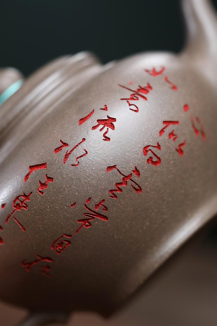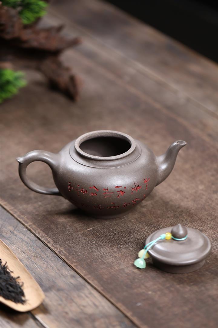 原礦紫泥手工刻繪瑞獸紫砂壺POT6522