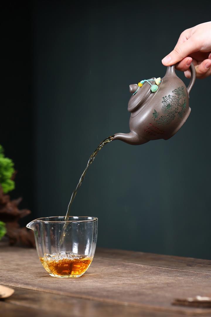 【泥料特點】砂土氣重,似淳實農民,日久使用,漸露鋒芒,養成變化,溫潤莊重。紫砂是壹種雙重氣孔結構的多孔性材質,氣孔微細,密度高。用紫砂壺沏茶,不失原味,且香不渙散,得茶之真香真味。紫砂使用越久,壺身色澤越發光亮照人,氣韻溫雅。紫砂壺長久使用器身會因撫摸擦拭,變得越發溫潤光澤。
