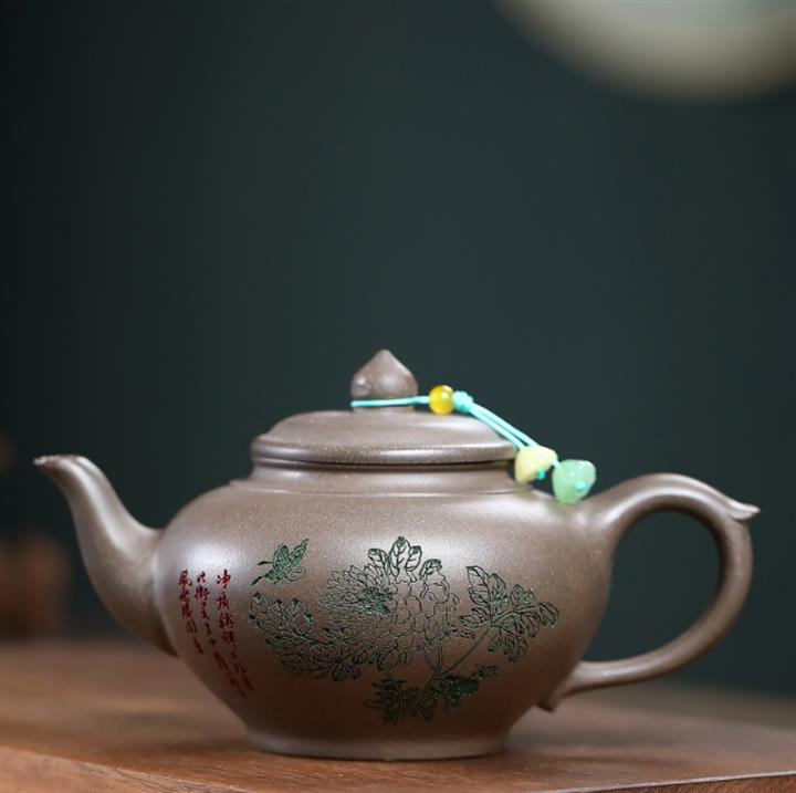 原礦九齡君子蘭墨綠泥紫砂壺POT6519