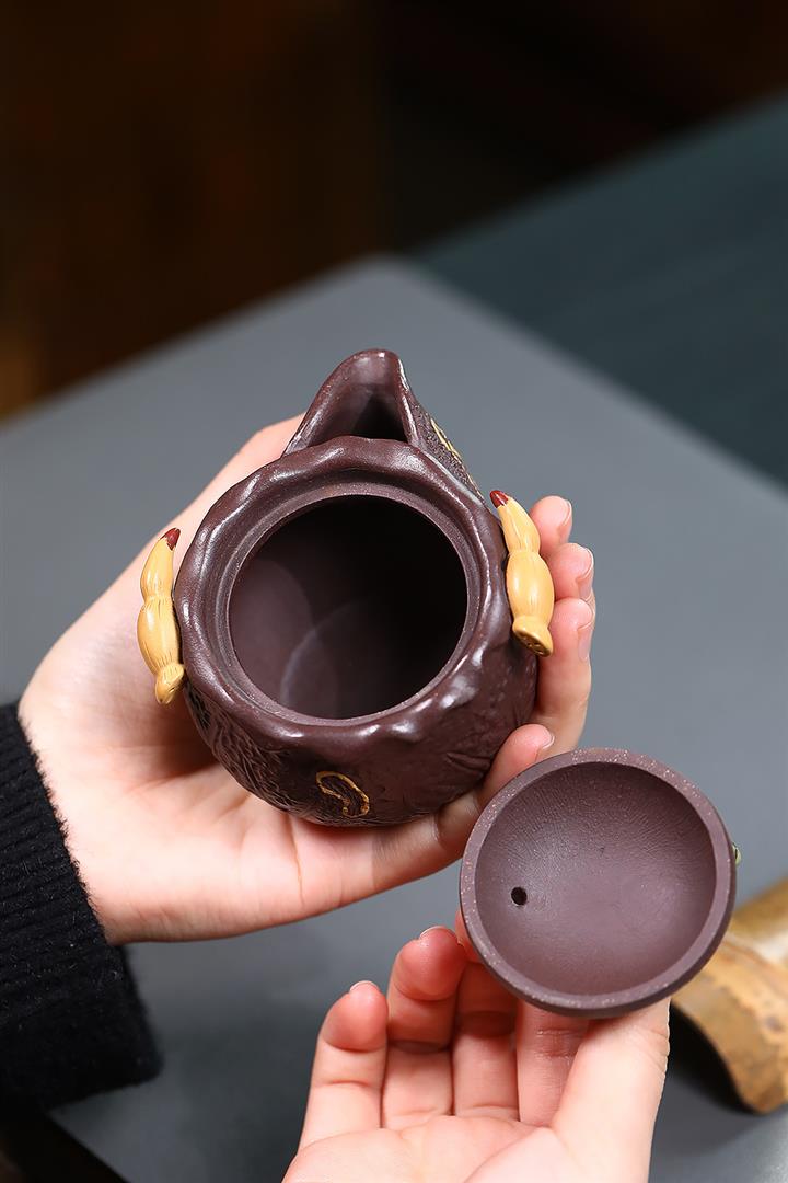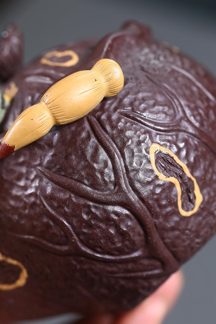 原礦大紅袍手工石榴花多子多福壺POT6517