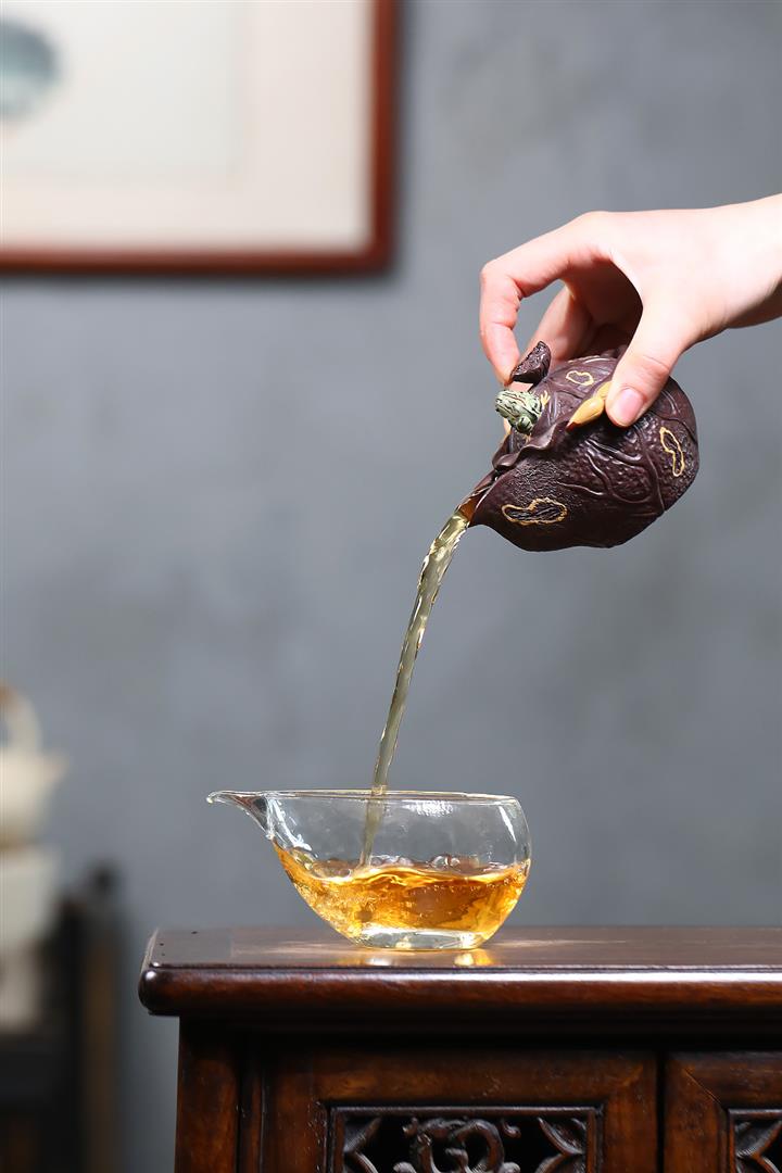 【泥料特點】砂土氣重,似淳實農民,日久使用,漸露鋒芒,養成變化,溫潤莊重。紫砂是壹種雙重氣孔結構的多孔性材質,氣孔微細,密度高。用紫砂壺沏茶,不失原味,且香不渙散,得茶之真香真味。紫砂使用越久,壺身色澤越發光亮照人,氣韻溫雅。紫砂壺長久使用器身會因撫摸擦拭,變得越發溫潤光澤。