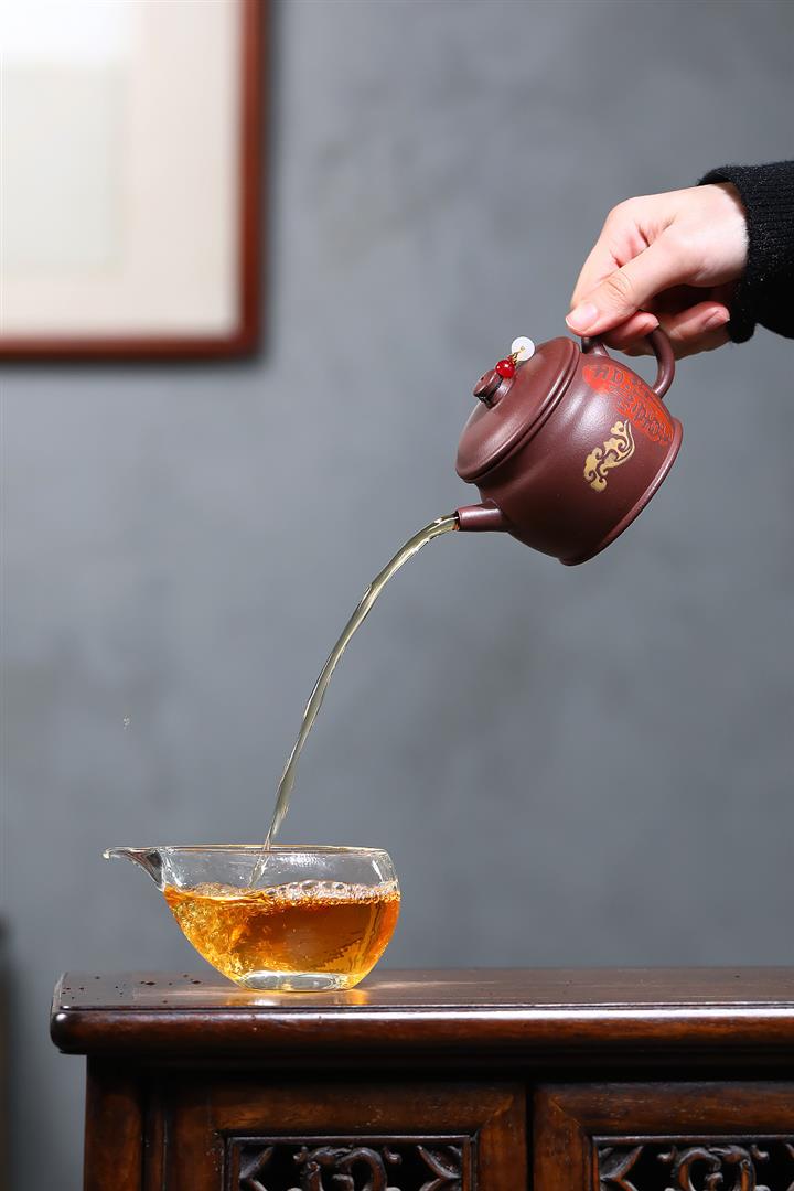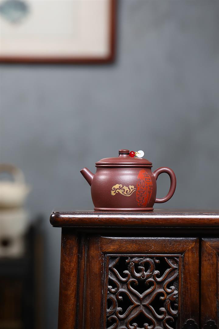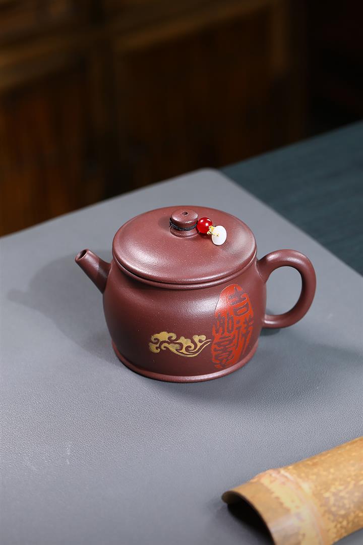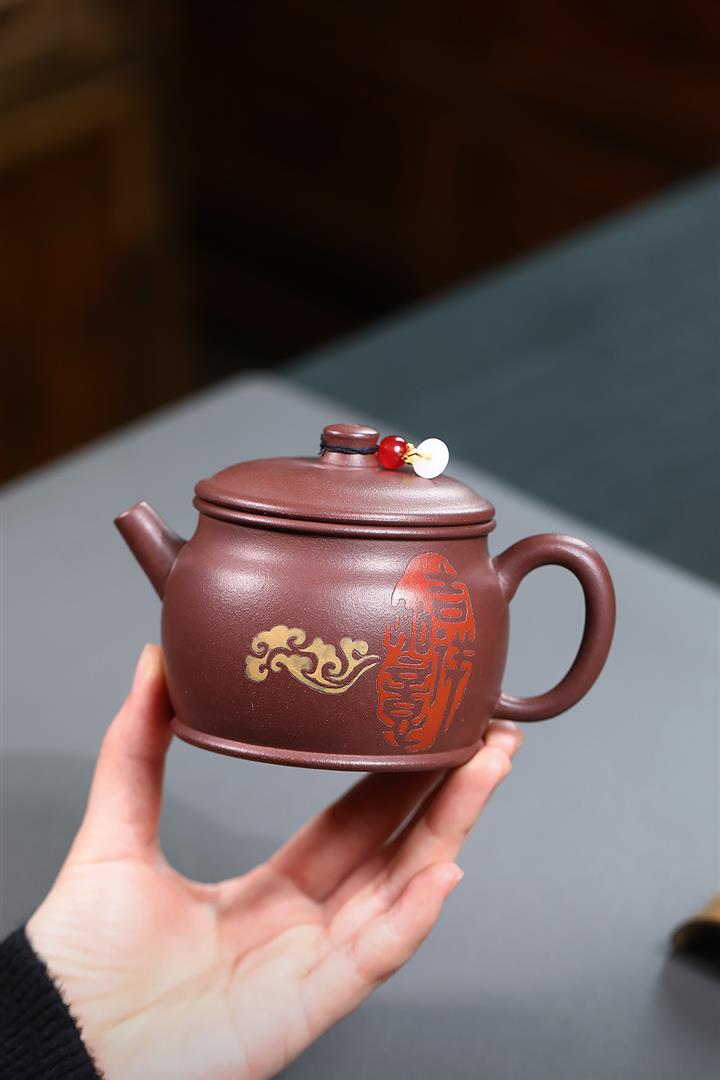 手工紫砂壺黃金段刻繪靜心茶壺家用手泡茶具禮品pot3816