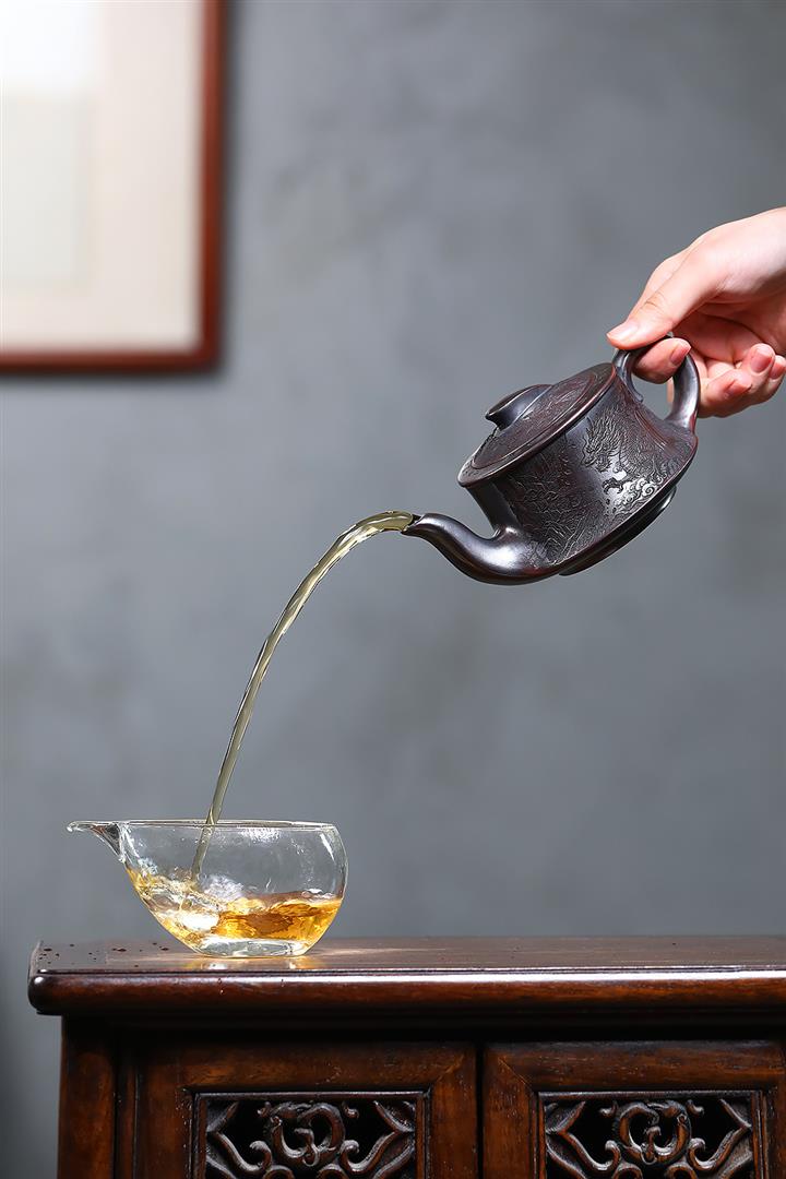 【泥料特點】砂土氣重,似淳實農民,日久使用,漸露鋒芒,養成變化,溫潤莊重。紫砂是壹種雙重氣孔結構的多孔性材質,氣孔微細,密度高。用紫砂壺沏茶,不失原味,且香不渙散,得茶之真香真味。紫砂使用越久,壺身色澤越發光亮照人,氣韻溫雅。紫砂壺長久使用器身會因撫摸擦拭,變得越發溫潤光澤。