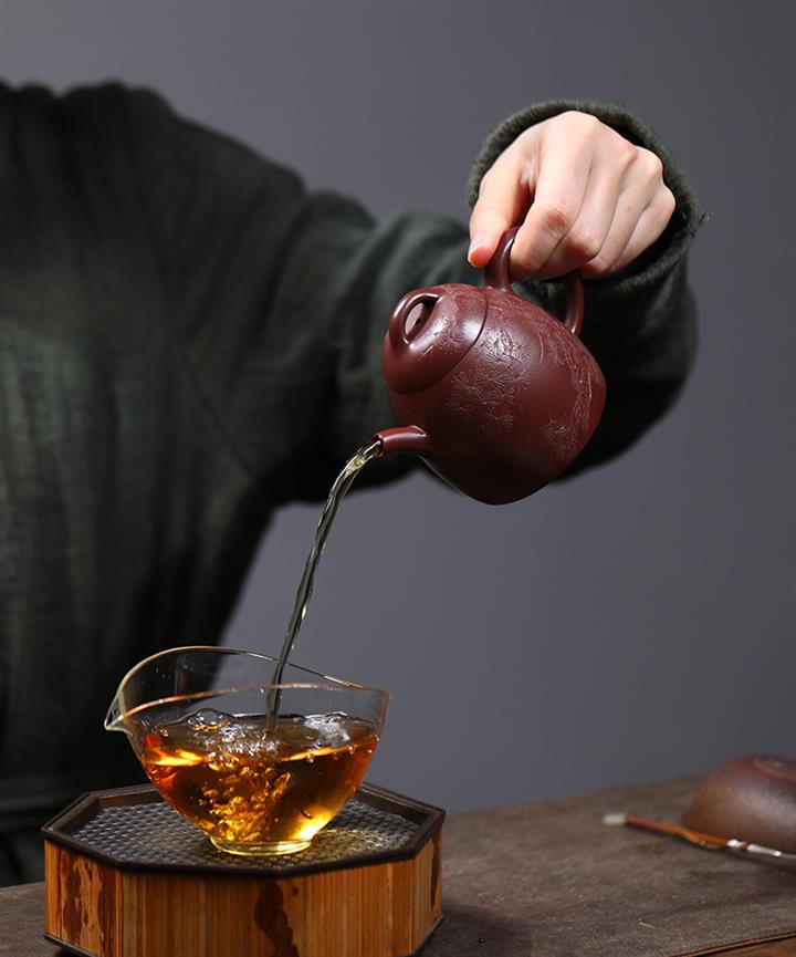 【泥料特點】砂土氣重,似淳實農民,日久使用,漸露鋒芒,養成變化,溫潤莊重。紫砂是壹種雙重氣孔結構的多孔性材質,氣孔微細,密度高。用紫砂壺沏茶,不失原味,且香不渙散,得茶之真香真味。紫砂使用越久,壺身色澤越發光亮照人,氣韻溫雅。紫砂壺長久使用器身會因撫摸擦拭,變得越發溫潤光澤。