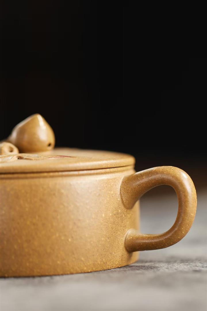 90cc原礦黃降坡泥壽桃漢瓦小品茶壺POT9762