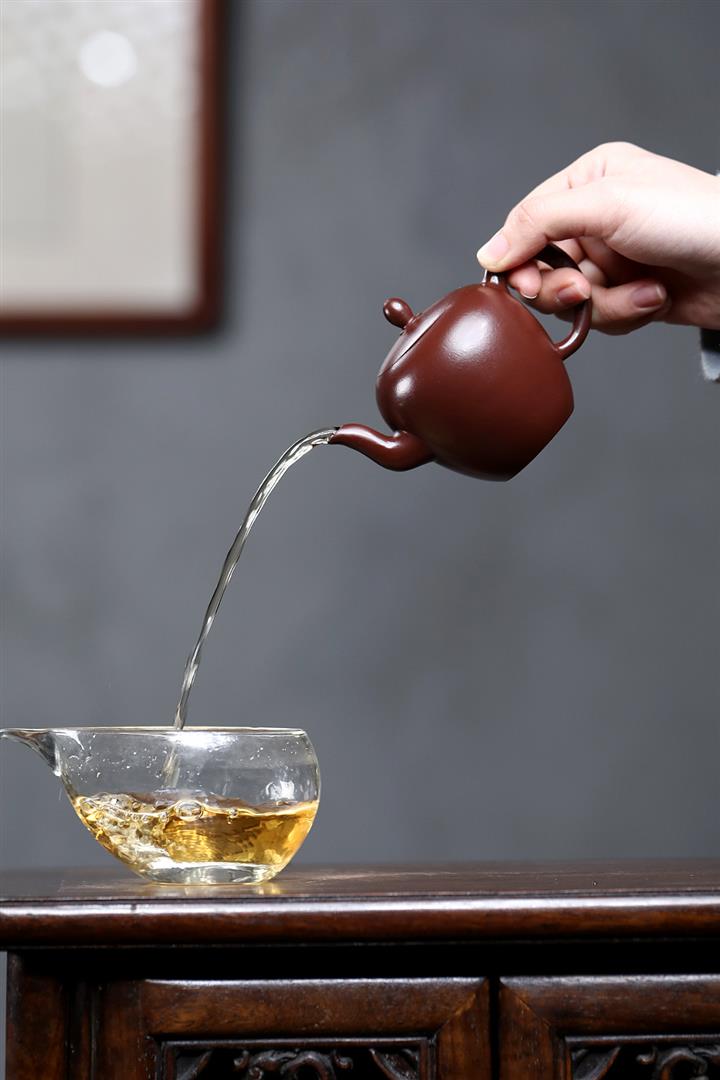 【泥料特點】砂土氣重,似淳實農民,日久使用,漸露鋒芒,養成變化,溫潤莊重。紫砂是壹種雙重氣孔結構的多孔性材質,氣孔微細,密度高。用紫砂壺沏茶,不失原味,且香不渙散,得茶之真香真味。紫砂使用越久,壺身色澤越發光亮照人,氣韻溫雅。紫砂壺長久使用器身會因撫摸擦拭,變得越發溫潤光澤。