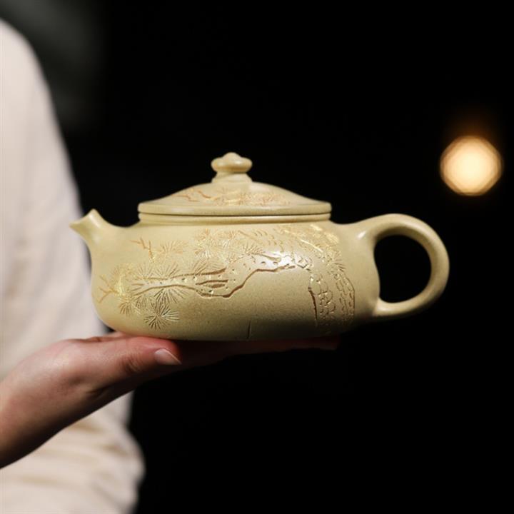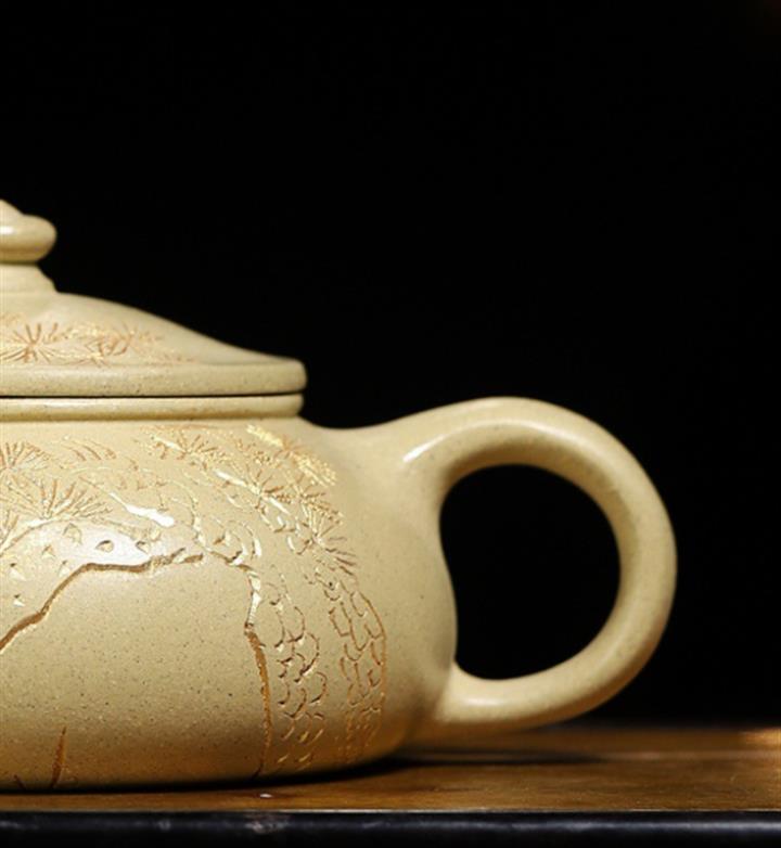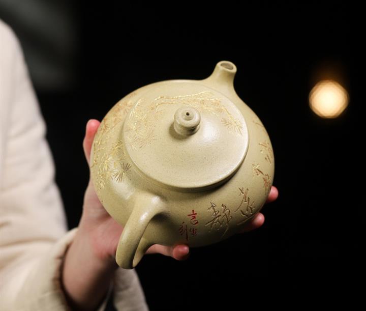 【作品介紹】此款壺形線條流暢,壺把,壺嘴,壺身壹氣呵成栩栩如生,是收藏把玩的好壺,泥料色澤古樸典雅,日久使用,漸露鋒芒,養成變化快,溫潤莊重,用其泡茶,使用的年代久,壺身就溫潤,泡出來的茶湯也就醇郁芳馨。