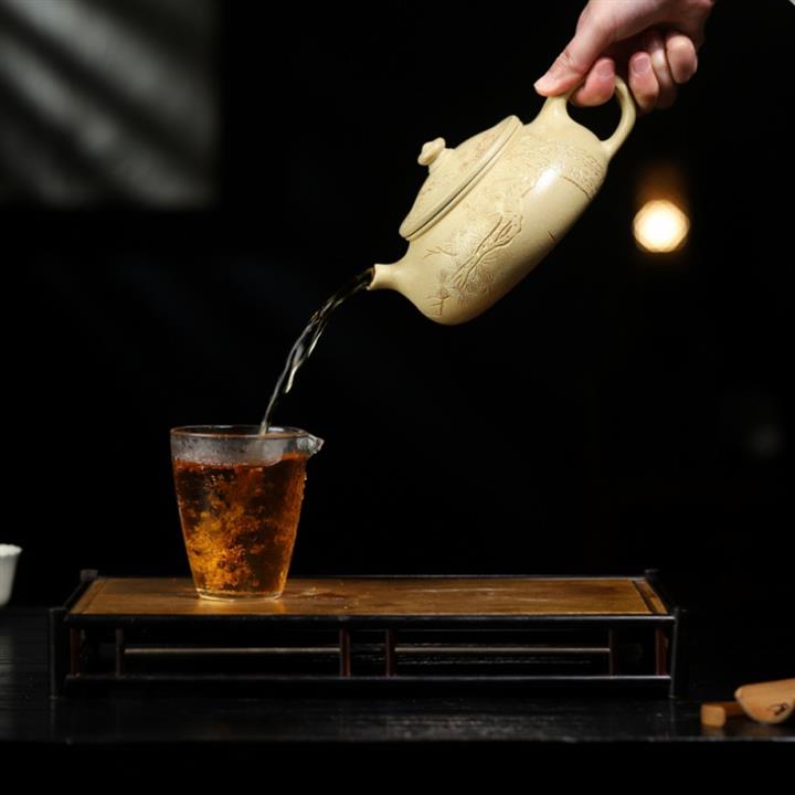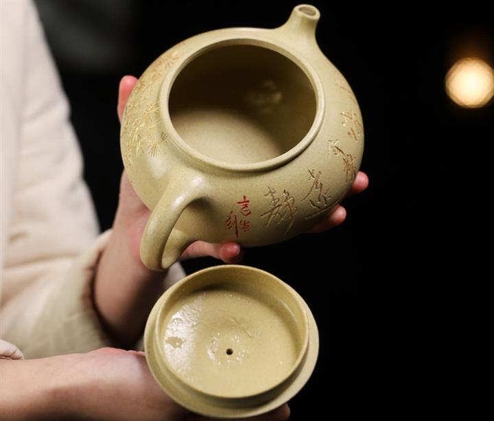 【泥料特點】砂土氣重,似淳實農民,日久使用,漸露鋒芒,養成變化,溫潤莊重。紫砂是壹種雙重氣孔結構的多孔性材質,氣孔微細,密度高。用紫砂壺沏茶,不失原味,且香不渙散,得茶之真香真味。紫砂使用越久,壺身色澤越發光亮照人,氣韻溫雅。紫砂壺長久使用器身會因撫摸擦拭,變得越發溫潤光澤。